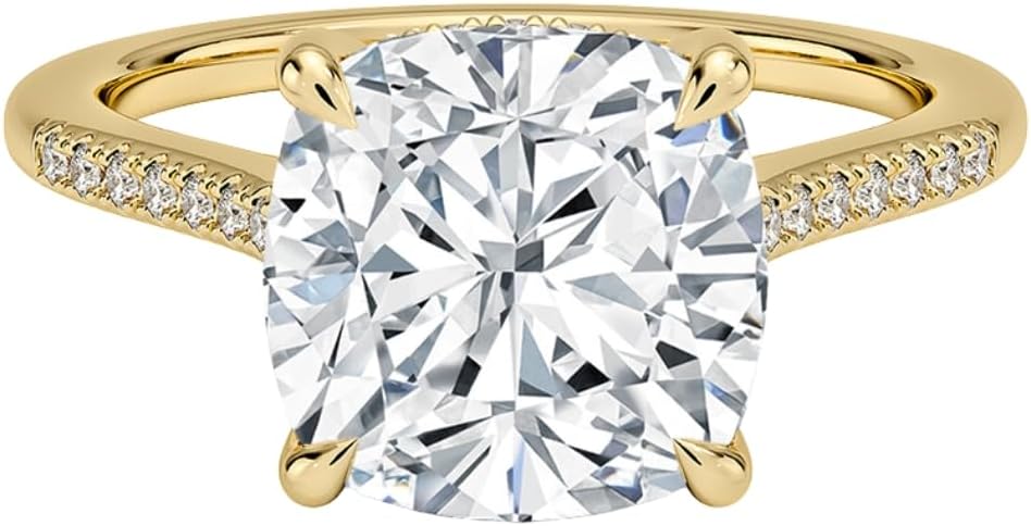 • STUNNING LAB-GROWN PRINCESS CUT DIAMOND RING: This timeless Accent Hidden Halo ring features a 1 carat (5.5x5.5 MM) Princess cut lab grown center diamond with exceptional E-F color and VVS2 clarity,beautifully complemented by Round cut side stones totaling approximately 0.22 carats, also in E-F color and VVS2 clarity,Each diamond is carefully hand-selected for maximum brilliance.*Please note: Actual diamond weight and size may vary by ±6% due to the hand-selection process.