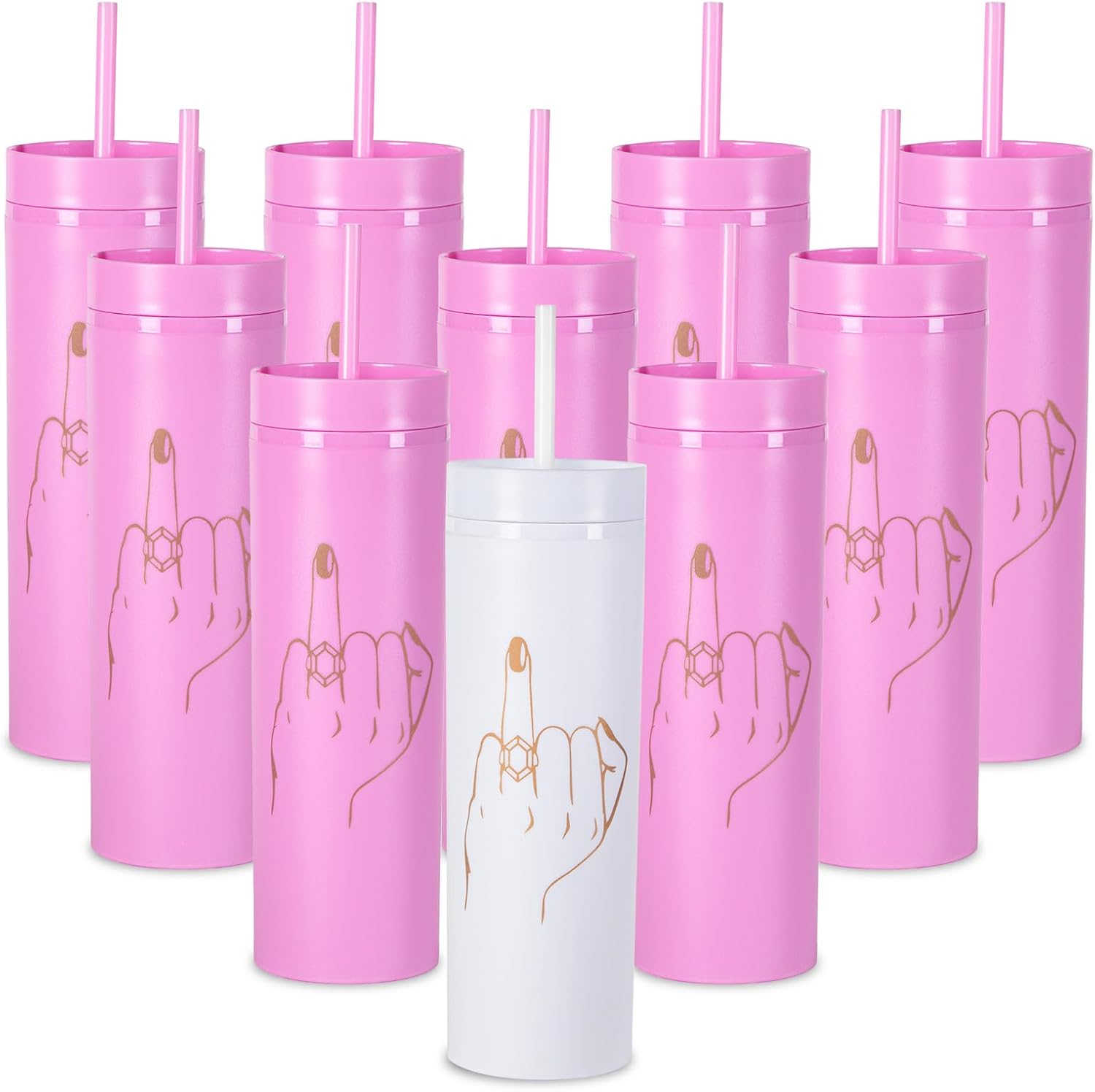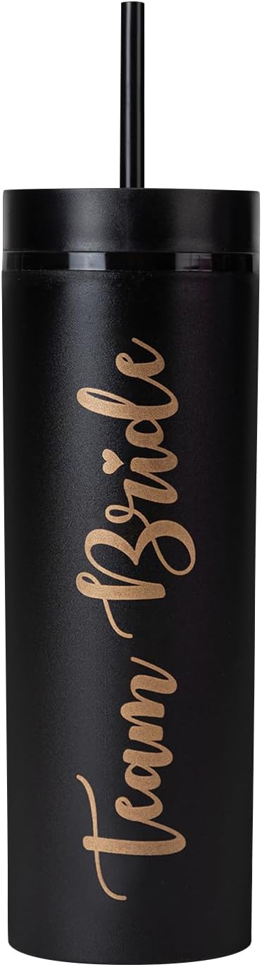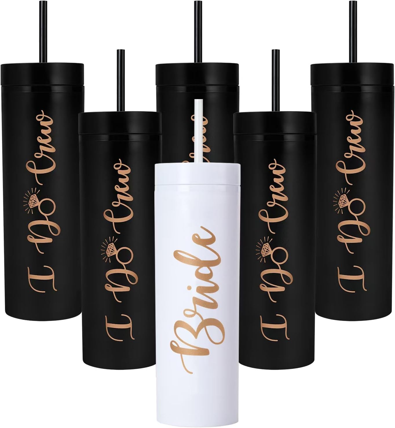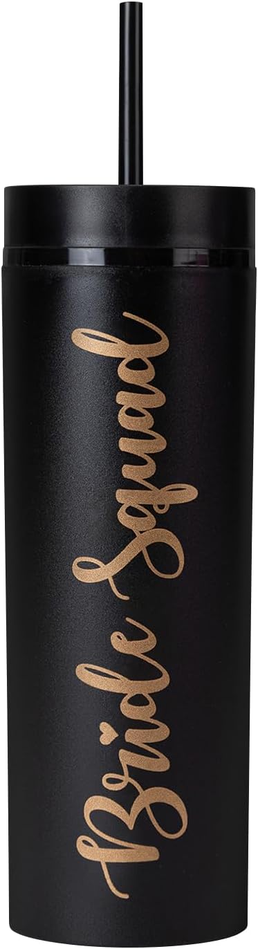 Features: Uniquely designed with Bride Tribe and Bride print . Durable , reusable and safe frost flex plastic ,BPA free . Instagram worthy AF! These fun Bride Tribe party drink cups are truly the ultimate bachelorette party decoration ! So celebrate with our Bride Tribe party drink cups is totally to be exact! Specifications: Material: food grade plastic Color: black & white with Rose Gold Print Size: approx. 8.39*2.76 inches Capacity: approx. 16 oz Package includes: 1 x White Bride Tumbler with sealed slide lid 9 x Black Bride Tribe Tumblers with sealed slide lids 10 x Straws