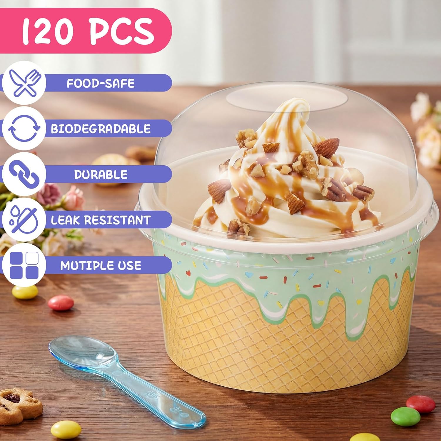| Included Components | 120 x Lids, 120 x Paper ice cream cup, 200 x Spoons |
