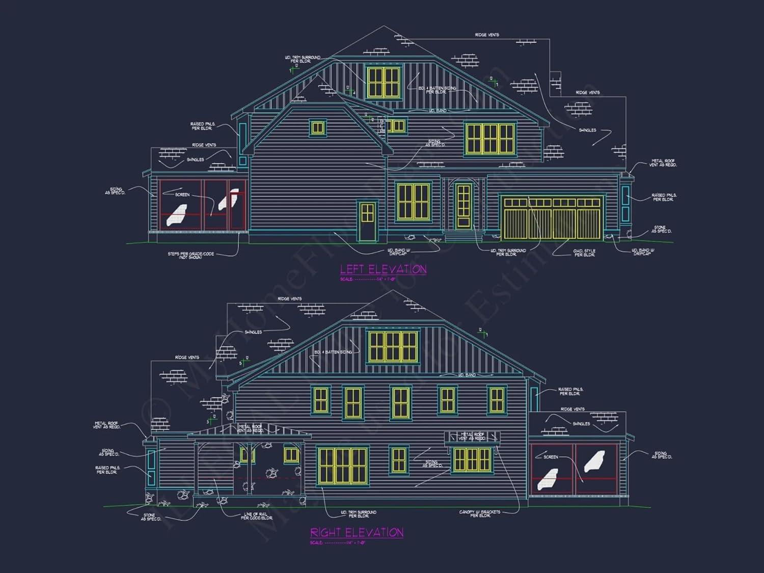 Width: 62′-6″Depth: 82′-8″Htd SF: 4,983Unhtd SF: 2,345Luxurious 3-Story House Plan with 5 Bedrooms and CAD BlueprintsDiscover this stunning Transitional-Traditional house plan with 4,983 heated sq. ft., flexible layouts, open floor plan, and professional CAD files for architects and builders.This Transitional house plan offers a perfect mix of luxury, flexibility, and functionality. Designed for modern living, it delivers timeless curb appeal, smart spatial flow, and thoughtful craftsmanship across three impressive levels.Key Features of the Home PlanLiving Areas - Heated & UnheatedHeated area: 4,983 sq. ft. across 2.5 stories, including a spacious bonus area on the third floor.Unheated extras: Screened porch, covered patio, 3-car garage, and multiple outdoor living areas.Bedrooms & Bathrooms5 total bedrooms including a first-floor guest suite and an expansive Owner Suite upstairs with tray ceilings and a large walk-in closet.5 full bathrooms and additional half bath, thoughtfully placed for convenience and guest access.Interior Highlights10 ft+ coffered ceilings throughout the main floor add grandeur and vertical space.Open floor plan with seamless flow between the kitchen, breakfast nook, and family room. Explore more open floor plans.Gourmet kitchen features a large island, walk-in pantry, and butler's pantry. See kitchen island designs.Cozy fireplace anchors the great room for year-round warmth. View fireplace-inclusive layouts.Garage & Storage DetailsGarage Bays: 3-car garage with additional workspace and storage alcoves.Garage Type: Attached garage, ideal for convenience and security.Storage: Includes mudroom cubbies, attic space, oversized Owner closet, and bonus storage rooms.Outdoor Living FeaturesCovered friends porch, screened rear porch, and private patio perfect for outdoor entertaining.Beautiful exterior finished in a blend of stone and siding, balancing elegance and