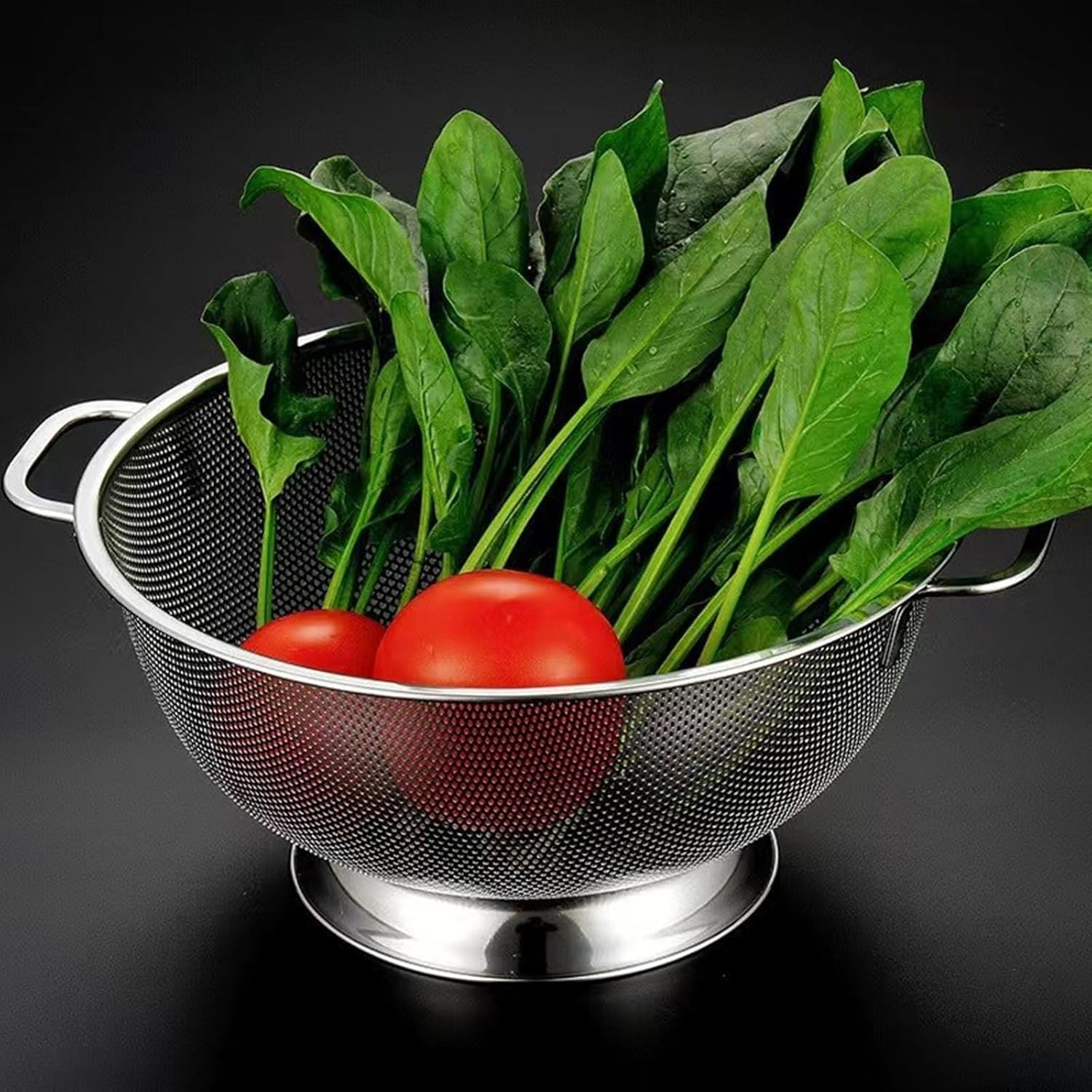 2 Piece Steel Strainer Basket with Handle Kitchen Colander Bowl For Draining Pastas Noodles Vegetable and Fruit Features: Made from 201 stainless steel, this draining basket resists and oxidation, ensuring long term use Its sturdy construction supports heavy ingredients for daily kitchen need The unique hollow pattern and well spaced holes allow quick and effective water drainage Whether washing vegetables, fruits, or pasta, you ' ll achieve ideal drying results Perfect for draining vegetables, fruits, seafood, and other foods, this basket stable placement and space saving stackability Its multifunctional design makes it a must have for any home kitchen Designed with comfortable and slip handles for easy lifting and moving The secures grip ensures safe handling when pouring out water or transporting items The smooth stainless steel surfaces allows quick with water or detergent Its properties make it dishwasher safe, keeping your kitchen tool hygienic Specifications: Component: 201 Stainless Steel Color: Silver Size: approx 22.5x10.5cm / 8.86x4.13in and 28.5x11.5cm / 11.22x4.53in Package Includes: 2pcs Kitchen Colander ( 2 different sizes) Note: Please allow 1-3cm error due to manual measurement please make sure you not mind before you bid Due to the differences between different monitors, the picture may not reflect the item actual color