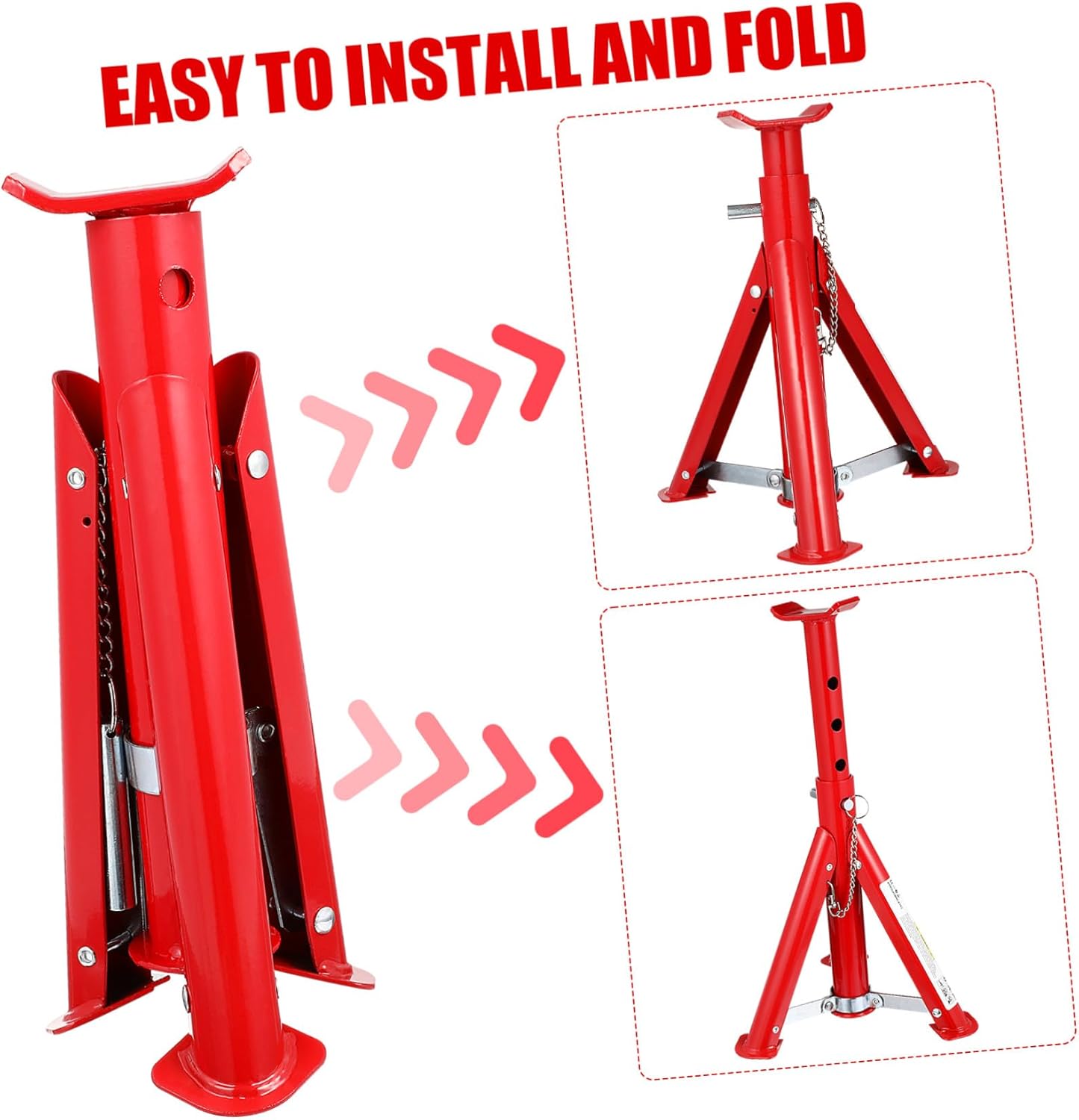 Package List 2 x jack stands Features - Large load capacity: Our jack stand is designed to handle heavy loads, boasting an impressive weight capacity of three tons automotive lift jack stands. - Adjustable design: The rack and pin of our jack stand allow it to be set to the desired level, very convenient to use jack stand. -Product Info:Car support bracket -Material:Carbon steel large jack stands for trucks -Color:Red Car Lifting Stand - Compact and portable: stand can conveniently fold down to a compact size, making it perfect for keeping in your trunk aluminum jack stand. - Easy to use: stand have clear structure, easy to use, saving time and eliminating the need for extra repair services adjustable support jack. - Durable construction: The robust construction of this jack stand ensures performance, providing you with a reliable experience car repair jack stand. -Size:24.00X14.00X14.00cm/9.43X5.50X5.50in heavy duty engine standGoods Informationcar tools And it can be easily folded into a smaller size, allows for easy storage and transportation.lifting tool It is an ideal companion for road trips, emergencies, and everyday maintenance.aluminum jack stand Crafted from iron, this jack stand exceptional durability and performance
