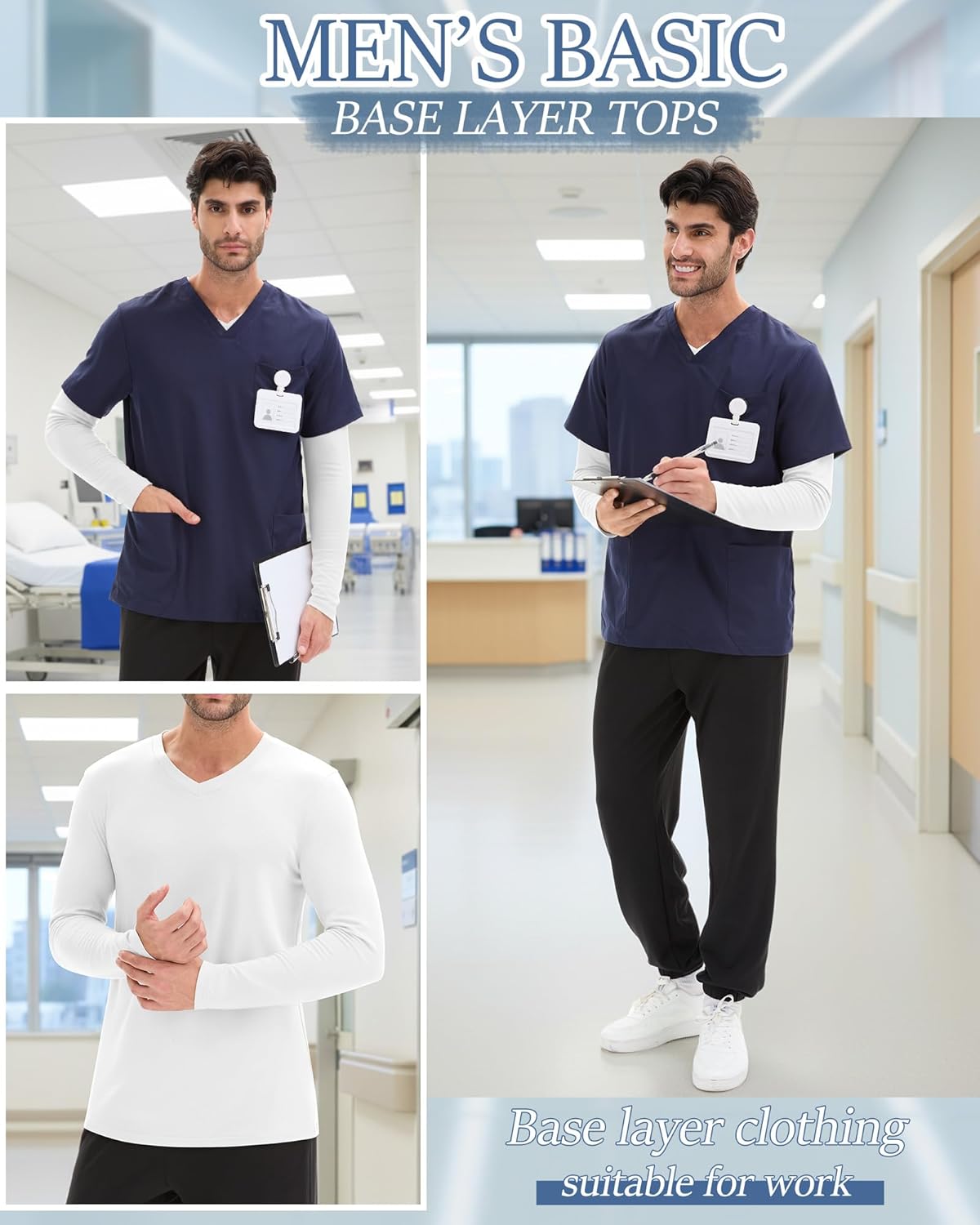 Features: Long sleeve underscrub is simple, leisure, sports in one, and the fabric is very breathable, comfortable for long time wear, whether you are at leisure, or work can be worn. You can use machine wash long sleeve tops in a laundry bag, and dry on a rack, and they come out good. Machine wash cold gentle, with like colors, do not bleach Specifications: Material: 60% polyester, 35% cotton, 5% spandex Package includes: 4 x Men's underscrub Notes: Manual measurement, please allow slight errors on size. The color may exist a slight difference due to different screen displays.