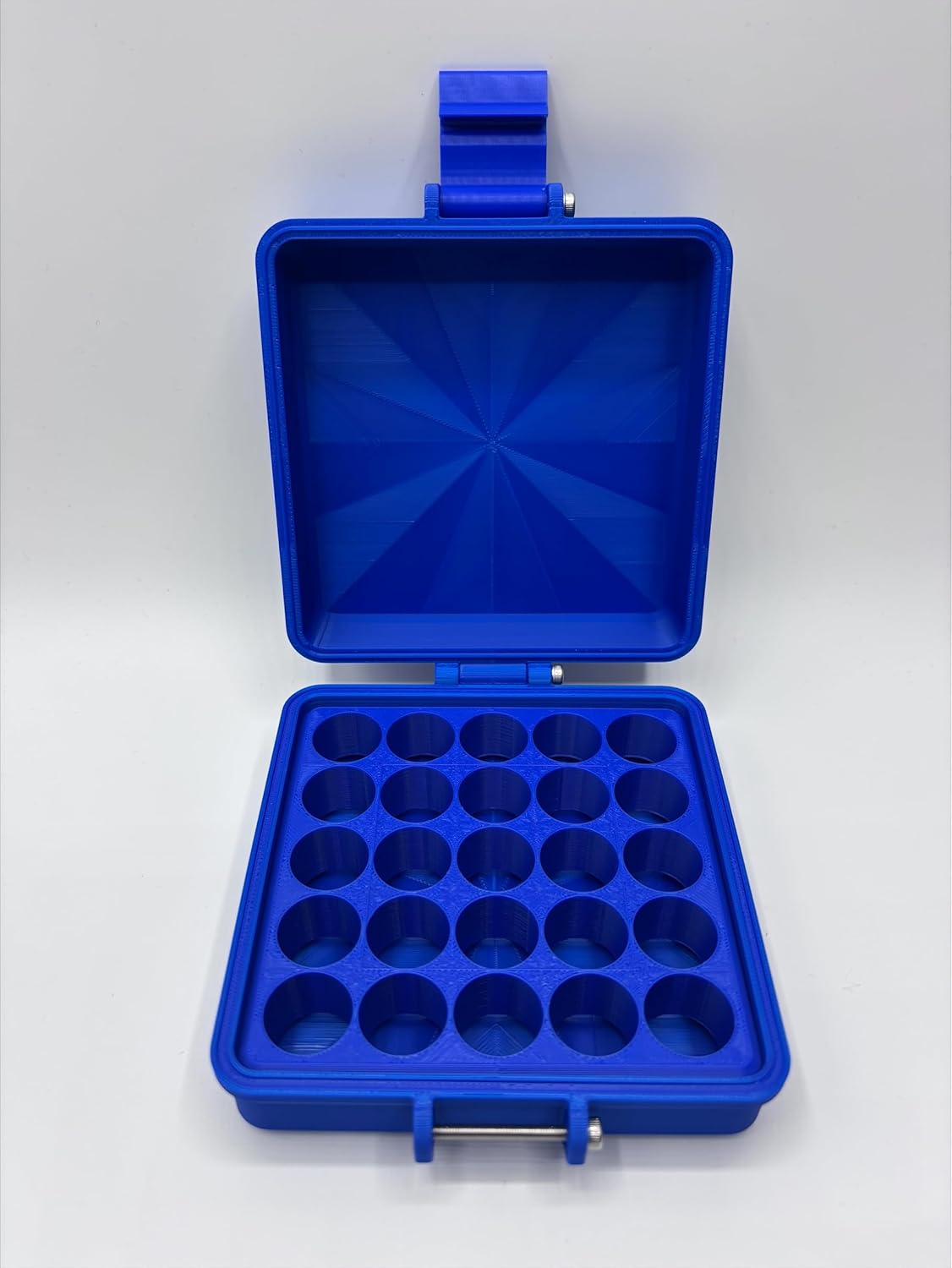 ๐ 3D Printed Vial Cases for 3ml Vials - Snap-Close Design for Travel & Storage No Matter the Job โ Weโve Got the Case From pocket-sized to powerhouse, our 3D-printed vial cases are built to fit your workflow. Whether you need to carry 6 vials on the go or organize 50+ at home, every case is designed for a snug fit, clean look, and dependable protection. ๐ Sizes available for 6, 10, 25, and 50 standard 3ml vials ๐ Snap-close designs for travel or storage ๐งโโ๏ธ Precision-fit slots keep vials upright and secure Eye-catching, durable, and made in the USA. Customize your setup. Stay organized. Store smarter. Minor blemishes may occur due to the 3D printing process. Color may vary slightly from photos. Vial caps sold separately. Made to order