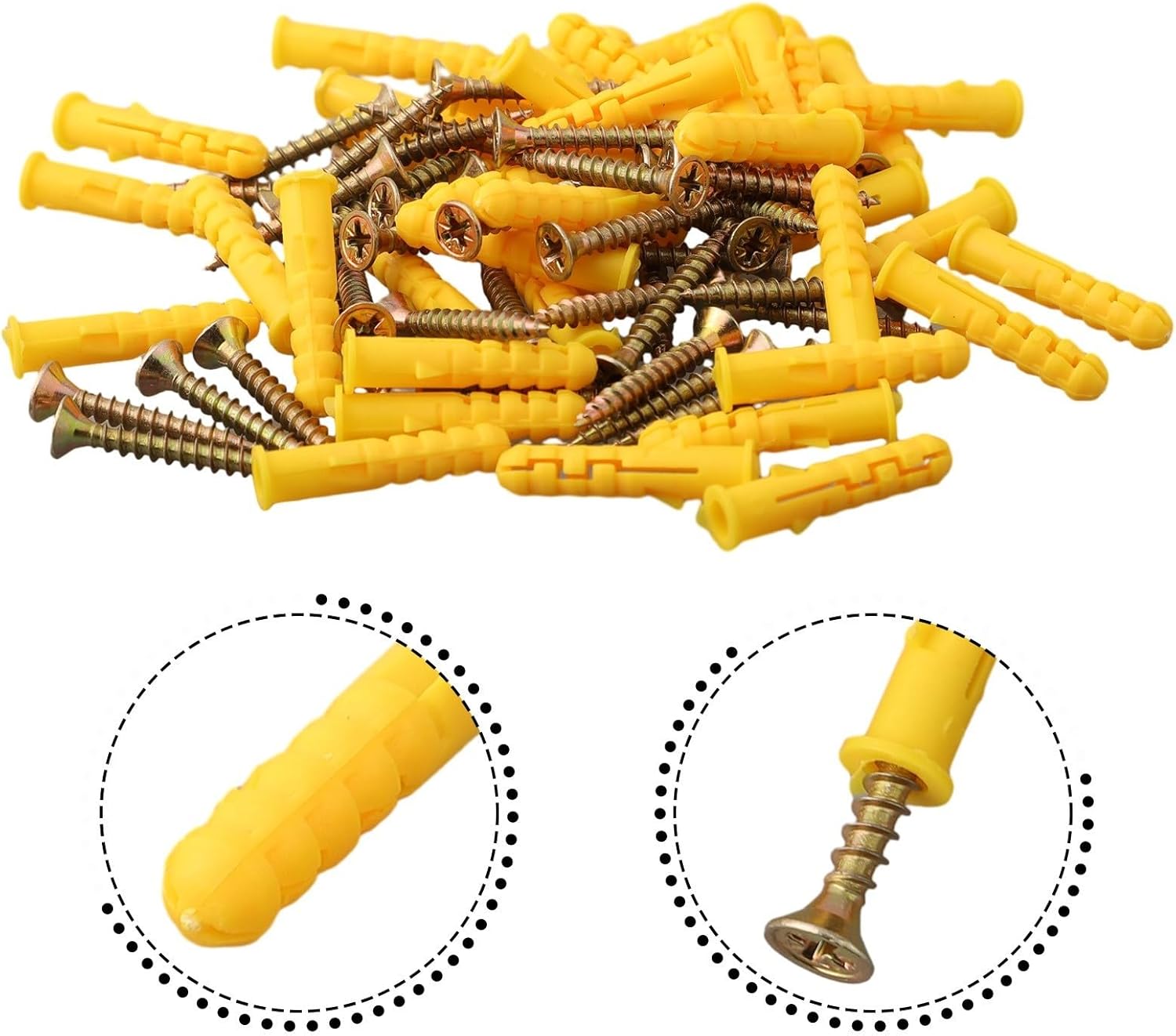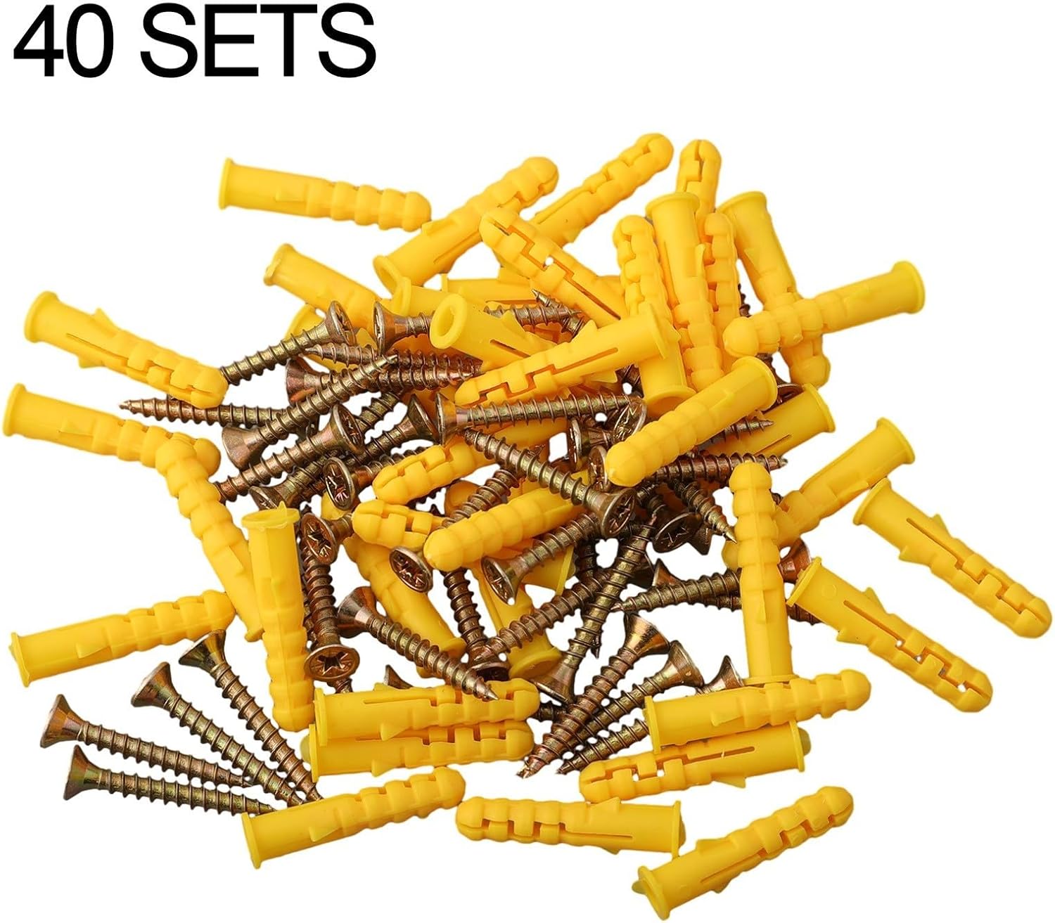 Feature:*The Wall Anchors and Screws Kit includes a substantial collection of 40 pieces, providing you with everything you need for various wall-mounting tasks.*Meticulously engineered for optimal performance in drywall settings, these anchors and screws offer superior holding power, that mounted objects remain securely in place, regardless of weight or size.*Crafted from high-quality materials, these anchors and screws not only provide a strong grip within the wall but also offer long-lasting durability, capable of handling the weight and pressure of daily use without compromise.*Versatile and reliable, the Wall Anchors and Screws Kit is perfect for hanging framed memories, installing floating shelves, for putting up curtain rods, and securing any other household items to your walls. for Ensure everything stays in place with this reliable and strong set.Specification:Quantity:40pcsQuality: Q235 Carbon Steel & PlasticThread name: M6Nominal length: 30mmtreatment: Colored zinc platingColor: as shown in the figureDrive Type: Cross TipsPacking list:40pcs self-tapping screws kit