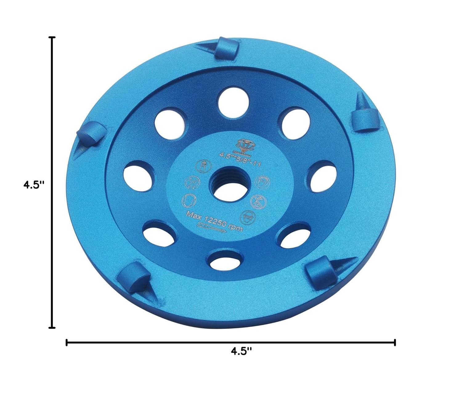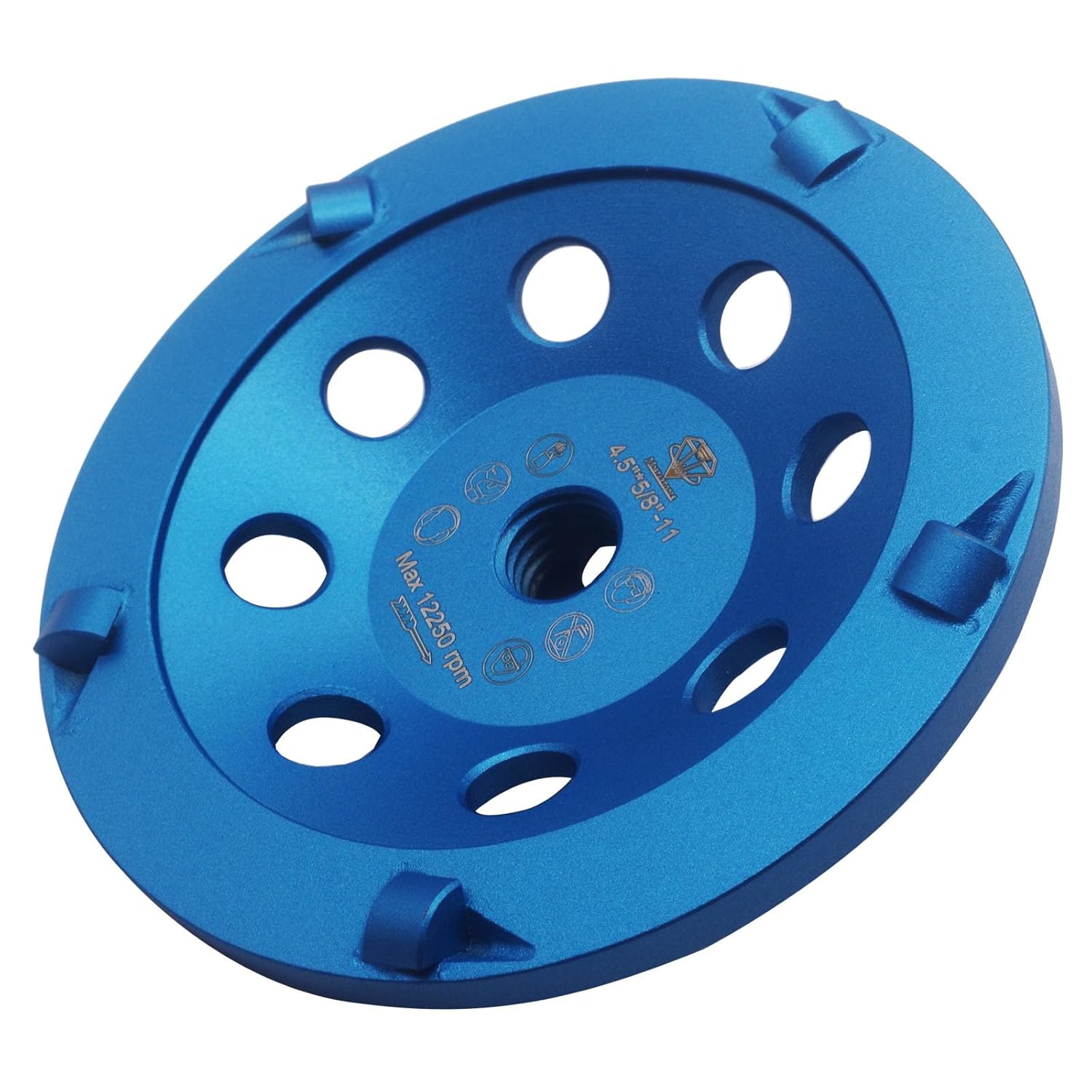 MOSTARTOOLS 4-1/2 Inch PCD grinding cup wheel is one of the fastest way to remove all kinds of coatings and adhesives,indluding heavy epoxy,glues,mastic,paint,carpet residue,acrylics,tile thin set,urethane and other membranes . It is made of highest quality polycrystalline diamonds with 5 pcs quarter round PCD Segments on each PCD grinding wheel.It scrapes and rips the toughest coatings quickly and effectively. Our PCD grinding disc scraping action eliminates gumming up of segments and maximizes production.And it is also known as PCD disc,panit removal disc. All of our PCD cup wheels are balanced well and the segments will not drop off even during high stress operations.The 5/8"-11 thread make the PCD grinding wheel suited for all kinds of angle grinder.