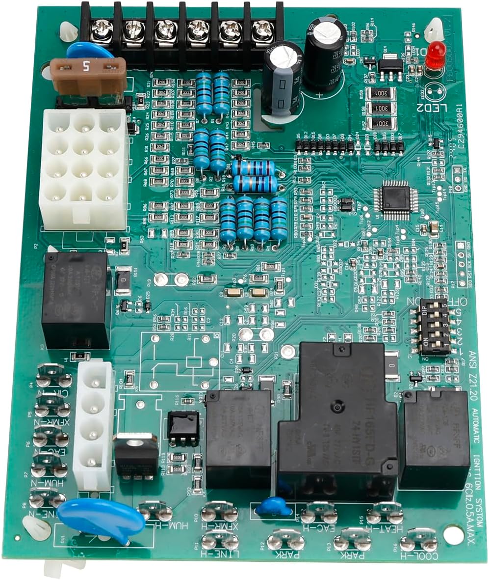 50A65-476 50A65-5165 Control Circuit Board Fit for Trane 50A65-476 D341213P01Feature:【Replace Number】Replace Number 50A65-5165,50A65-475,50A65-474,50A65-476,CNT05164,CNT3076, CNT03076,CNT05165,CNT03798 ;D341213P01, D341396P01, D341396P03,D341396P04,D341396P05.【Fitment】Compatible with Trane ,white ro-dgers furnace control board,American Standard Single Stage Integrated Furnace Hsi Controls With 80V IGN【Specifications】Input Voltage: 120/25 VAC (110/24 VAC)50/60 Hz ;Max. Input Current @ 25 VAC: 0.45 A;IGN Output:80 Vac ;Humidifier Output:120 Vac ; Electronic air cleaner output:120 Vac ;Fuse protection :5A【Function】1. IGN Fault Detection 2. Automatic Shutdown Of Due To Malfunction 3. Polarity Reverse Protection 4. Led Fault Prompt (Reference Instructions) 5. Intelligent System Locking FunctionPackage Include:1× Control Circuit BoardNote: to save yourself some hassle, please take a picture of the old one before removing it,make sure getting the wires on the correct terminals..