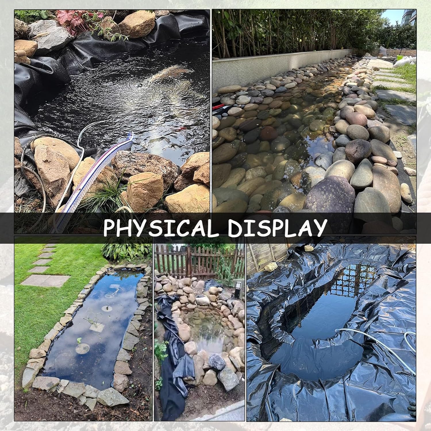 Flexible pond liners are used to create a waterproof barrier between soil and water. They can be used to seal not only ponds but also garden pools. Will provide a solid support for the healthy growth of your plants and fish. It's perfectly flexible, which means it won't tear or crack and therefore won't leak. ❖ SpecificationsName: Waterproof Pond LinerMaterial: High Density Polyethylene (HDPE)Thickness: 0.12 mm (5mil)Size: Customizable Thickness: 0.1mm, 0.2mm, 0.3mm, 0.4mm, 0.5mm. / Length and Width: Any size can be customized❖ Friendly suggestions1. Product size is measured manually, there may be an error of 1-3cm.3. Our pond liners are available in different sizes. Please order the liner slightly larger than the hole as it can be cut to size if necessary.