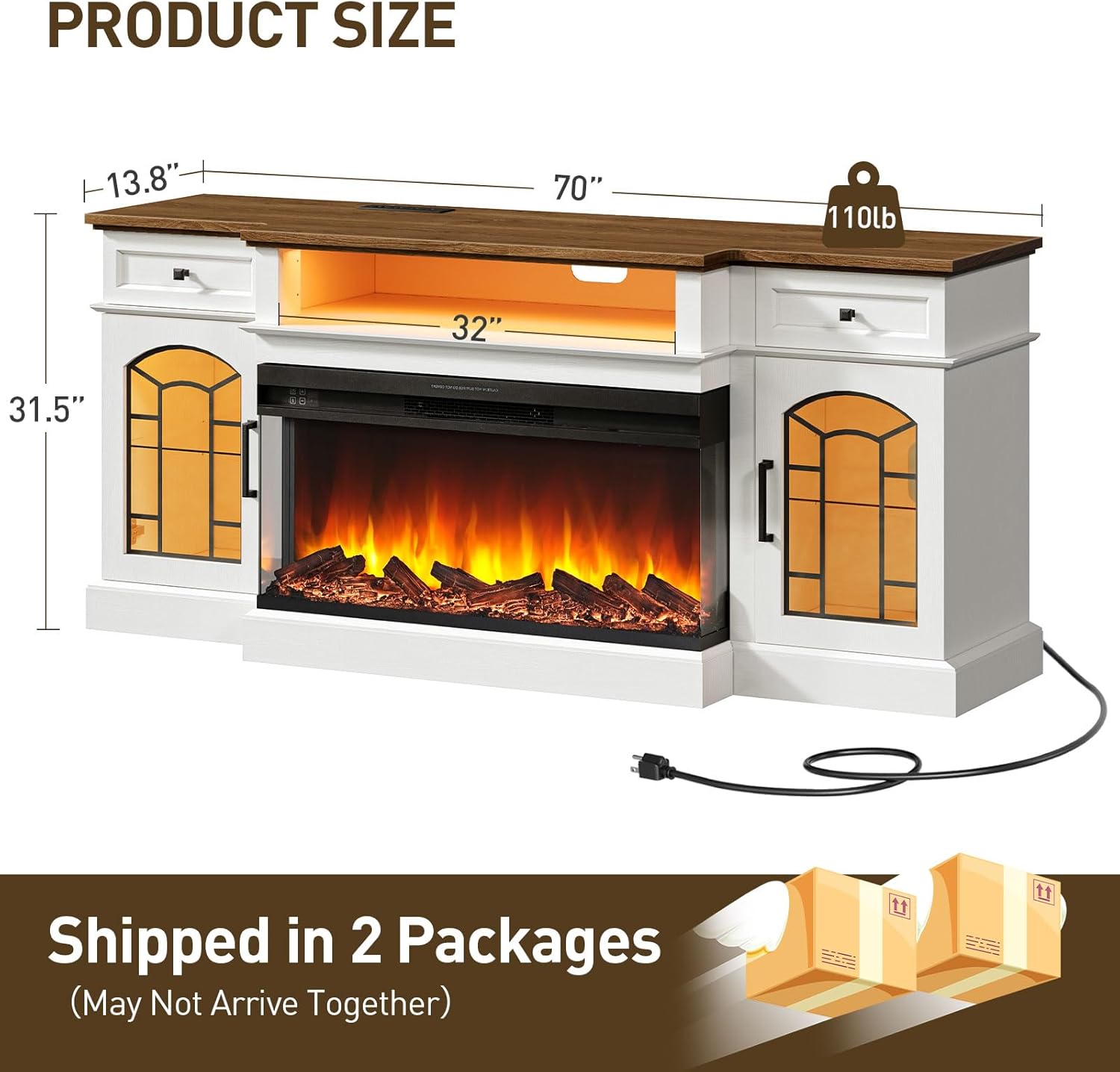 | Included Components | 1 x Charging Station, 1 x Fireplace, 1 x Hardware Kit, 1 x Instruction Manual, 1 x TV Stand |