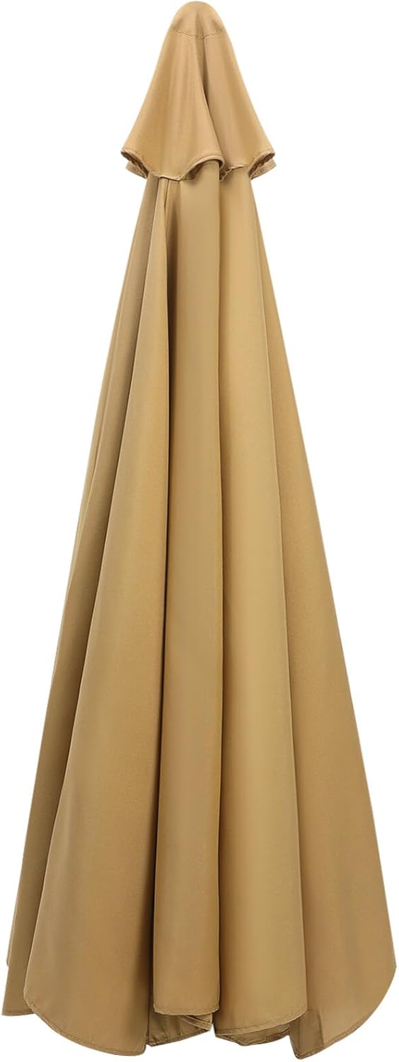 Notice: The base and bracket is not included in this item,you need to buy it separately.Description:If your patio umbrella surface is old, or even broken, and the frame is still intact, then you might consider just replacing the surface! Our product is a beige replaceable umbrella surface in a sleek, elegant color that wont look out of place with any style of architecture. Take off the old umbrella surface and replace it with this new one, and the whole umbrella will look . It is superbly made with fine needle stitching, making it more solid and less likely to break. Suitable for 8-rib umbrella frame of the same size.Size:270.00x270.00cm/106.1x106.1inShape:RoundShaft Material:polyester fabricsColor: Beige