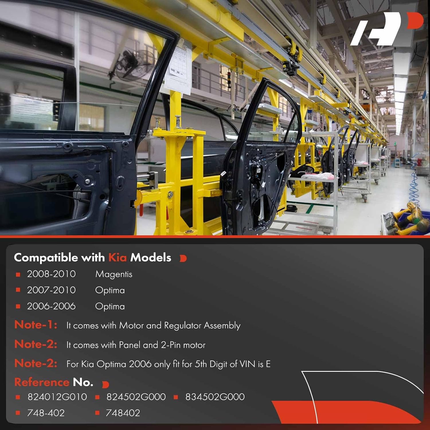 | Model | Power Window Regulator with Motor Compatible with Kia Optima 2006-2010, Magentis 2008-2010, Front Left Driver Side |