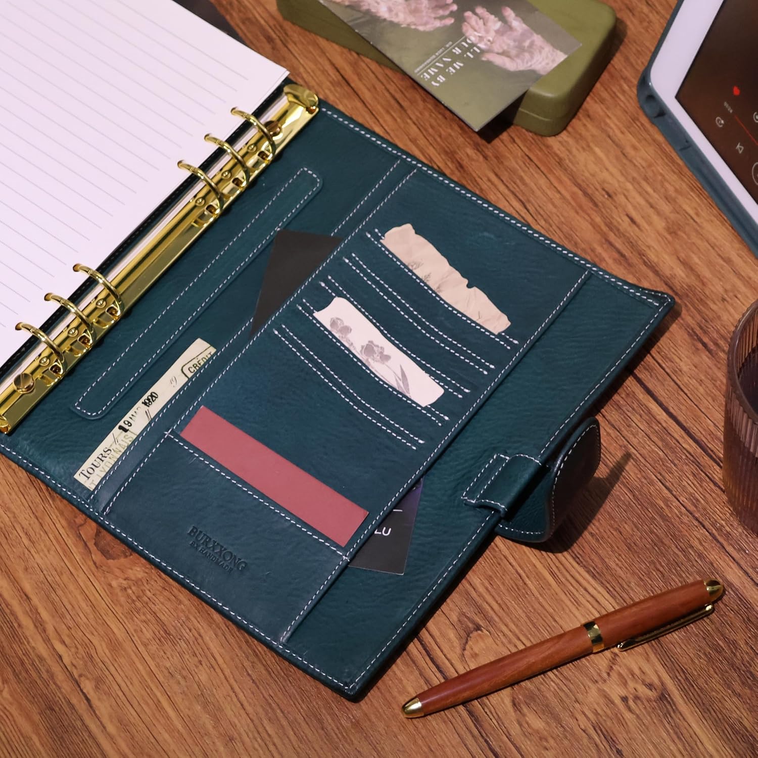 This journal notebook is made of high-quality Minerva box leather from BADALASSI in Italy. It is durable and smooth, with a soft and flexible texture, and is designed for both writing and drawing. The notebook has 45 sheets of random pattern Dorian ivory-colored paper, with a gilded detachable binder, and is perfect for writing, sketching, or taking notes. It is a great gift for artists, writers, and anyone who loves to create. The journal notebook is also refillable, so you can continue to use it for years to come.