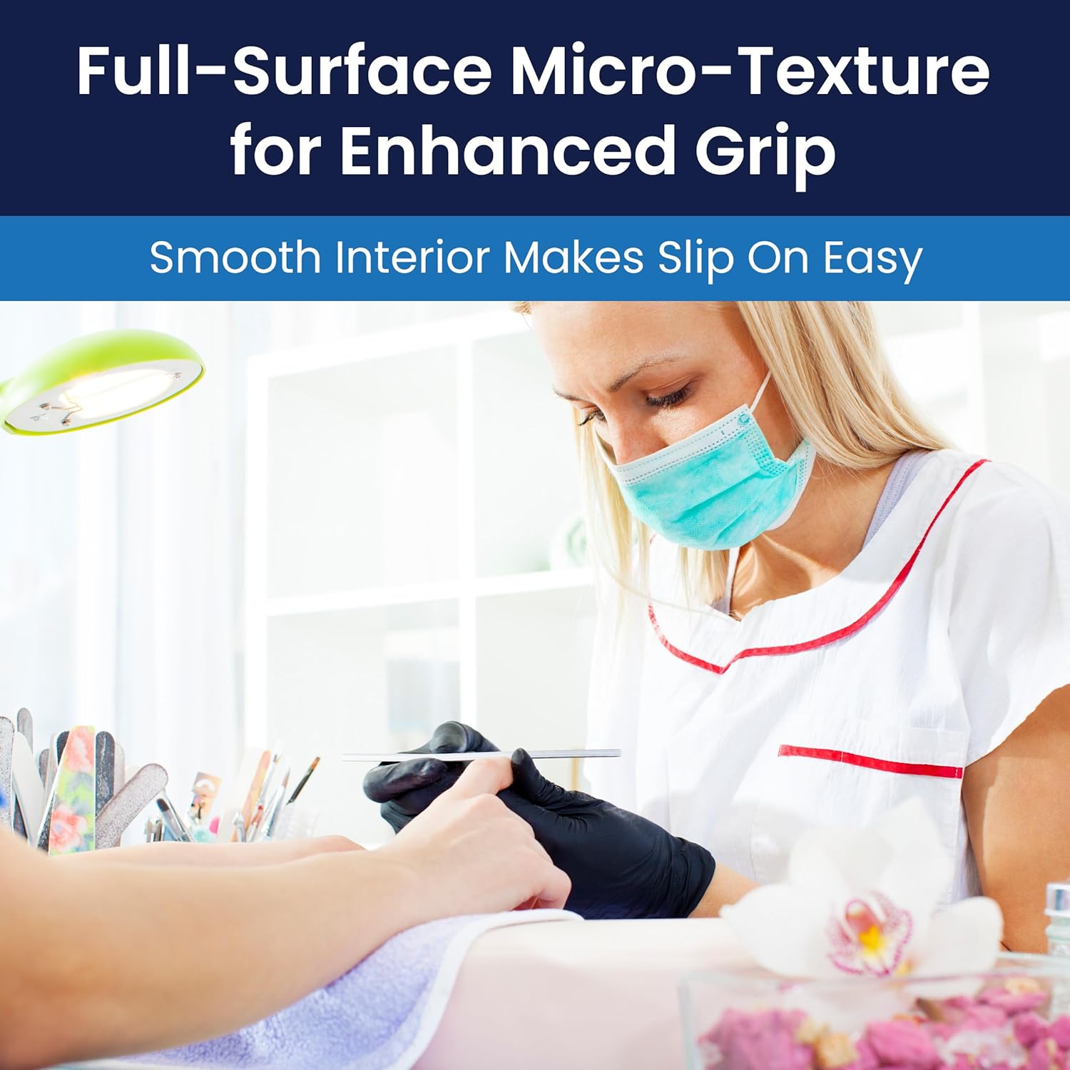 Product Description Adenna Phantom® 6-mil latex medical-grade exam gloves provide superior grip, flexibility, and durability. They are powder-free and low in latex protein to minimize allergic reactions. A sleek black color hides stains — ideal for tattoo artists, beauty professionals, and law enforcement. Details You’ll Love! 6-mil latex for flexibility and durability Powder-free with low latex protein to reduce irritation Black color conceals stains, inks, and dyes Comes in a pop-up dispenser box of 100 Key Features: Natural rubber latex for stretch and durability Powder-free to minimize irritation Exam-grade for professional use Full-surface micro-texture for a secure grip Professional Grade: Designed for tattoo and beauty professionals Trusted by law enforcement and security agencies Ideal for wet and dry applications XS, SM, MED, LARGE, XL Directions for use: Select the appropriate glove size for a secure and comfortable fit. Carefully insert hands into the gloves, ensuring complete coverage of the wrists. Use gloves for single-use applications only. Dispose of them properly according to workplace safety regulations. Store in a cool, dry place away from direct sunlight. Warning: Do not use if you have a latex allergy. Manufacturer Contact Information 888.3ADENNA(323-3662)