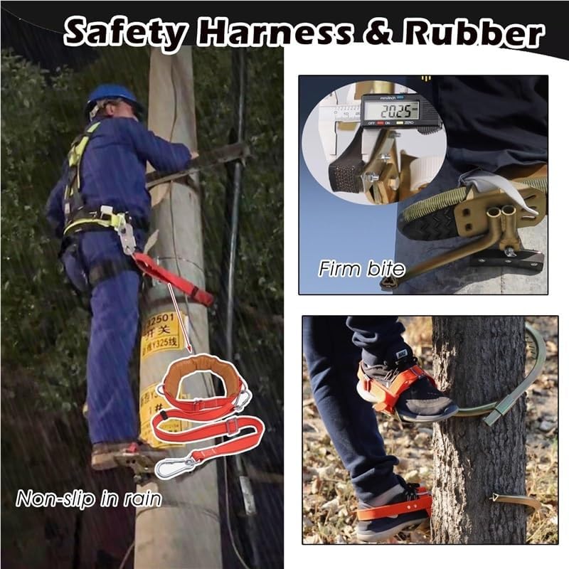 Conquer slippery poles with confidence using our ergonomically designed climbing spikes! Featuring thick, anti-slip rubber pedals that adapt to the unique shape of your feet, these spikes provide exceptional grip and comfort throughout your day. Experience stability even on wet surfaces, and feel secure with our safety lanyard, ensuring that you stay connected and safe during your climbs. Crafted from durable manganese steel, our climbing spikes are built to last. With a load capacity of 150kg (330 lbs), they are suitable for a variety of applications including cement and wire poles. The adjustable range of 250-550mm allows for a customized fit, while the rust-resistant material guarantees long-lasting performance. Our ergonomic design reduces fatigue, making it perfect for extended use in activities such as fruit picking, pole inspections, and jungle survival. Plus, with over 1,000 tests completed, you can trust that these spikes will provide reliable service for 5-10 years outdoors. No need for cumbersome tree steps; our spikes fit directly onto trees and concrete poles, simplifying your climbing experience. Tool-free adjustments mean you can easily make changes by hand, allowing for quick and efficient fitting. Included in your purchase are: - 1 x pole climbing spikes - 1 x safety strap For beginners, we recommend starting in a small area (less than 1 meter) to build confidence. Once you’re familiar with the technique, tackling any pole will become effortless. Equip yourself with our climbing spikes and elevate your outdoor adventures!