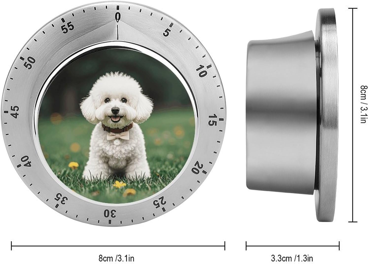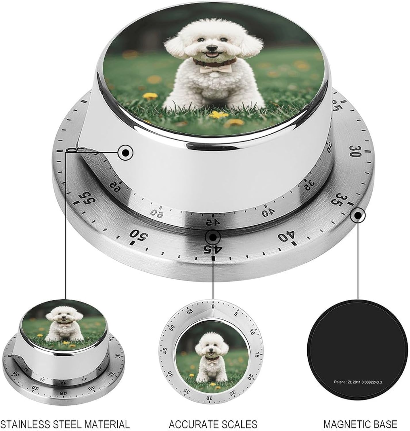 Bichon Frise Dog on The Grass Timer Stainless Steel Kitchen Timers Waterproof & Rust-Proof 60 Minute Mechanical Timer with Loud Alarm for Cooking, Baking, Fitness