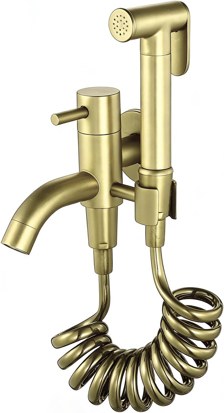 Durable brass construction with a spring hose – made from high-quality materials and equipped with an easy-to-operate single handle.Dual-function bidet/handheld spray gun, offering two adjustable spray modes – flexible installation and a spray distance of up to 1.5 meters, ensuring optimal hygiene.Product DetailsSpray Modes: 2 (Gentle/Powerful)Material: BrassHose Material: PVCHose Length: 1.5 metersImportant Notes1. All dimensions are measured manually, and an error of 1-3 mm is within the normal range. Please refer to the actual product size.2. Due to monitor settings and lighting differences, the product color may differ slightly from the pictures. Please refer to the product images on the details page or contact our customer service. We will provide a detailed color description to help you make your selection.