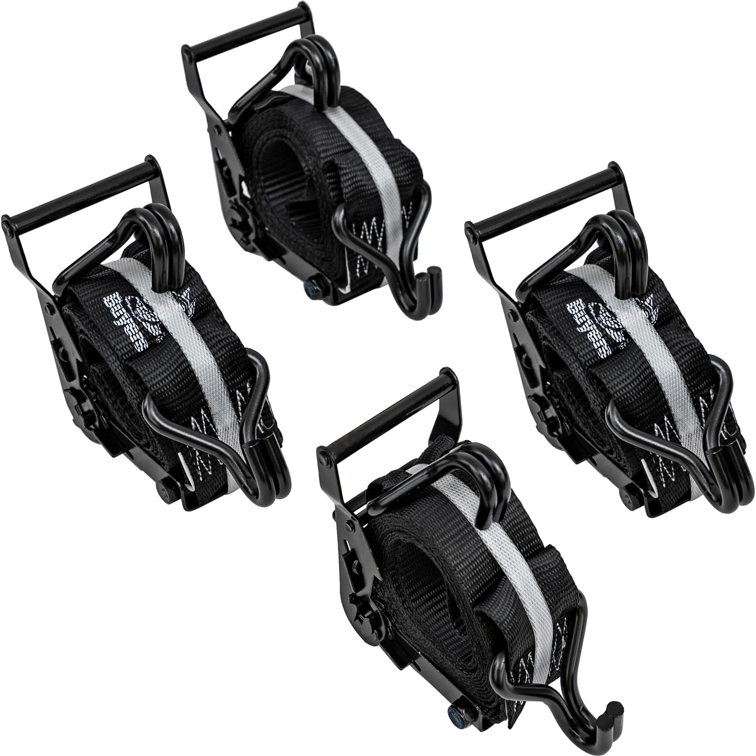 The Buyers Products 1496505, 4 Piece Spreader Tie Down Kit is designed to securely fasten hopper spreaders using four high‑strength polyester straps built for harsh winter conditions. Each strap provides a 4,400 lb break strength with a 1,466 lb working load limit to ensure a reliable hold during demanding use. The kit features an easy‑to‑operate ratchet handle for precise tensioning and smooth strap control. Double J hooks offer dependable attachment points that help maintain stability even when equipment is exposed to vibration or heavy loading. With a 120 in. strap length and 2 in. width, the kit provides extended reach and ideal load distribution for proper spreader fitment. Constructed from durable polyester and weighing 8.25 lb, this 4 Piece Spreader Tie Down Kit delivers long‑term performance and secure mounting for hopper spreaders, making it an essential accessory for winter maintenance operations.
