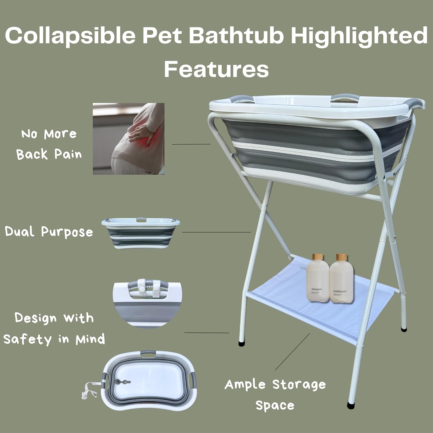 | Included Components | Collapsible Bathtub, Bath Stand, Non-Slipper Sticker, Safety Belt, Safety Belt Straps |