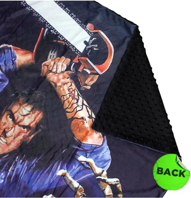 Perfect for solo use or cuddling with a warm (or cold) body. One of the coolest blankets to ever grace a couch, bed, or cabin is this super rad Evil Dead Ash Chainsaw Throw Blanket featuring the original poster art from the Turkish release. One might even feel a tinge of guilt being so cozy while Ash is working so hard to merk the undead!