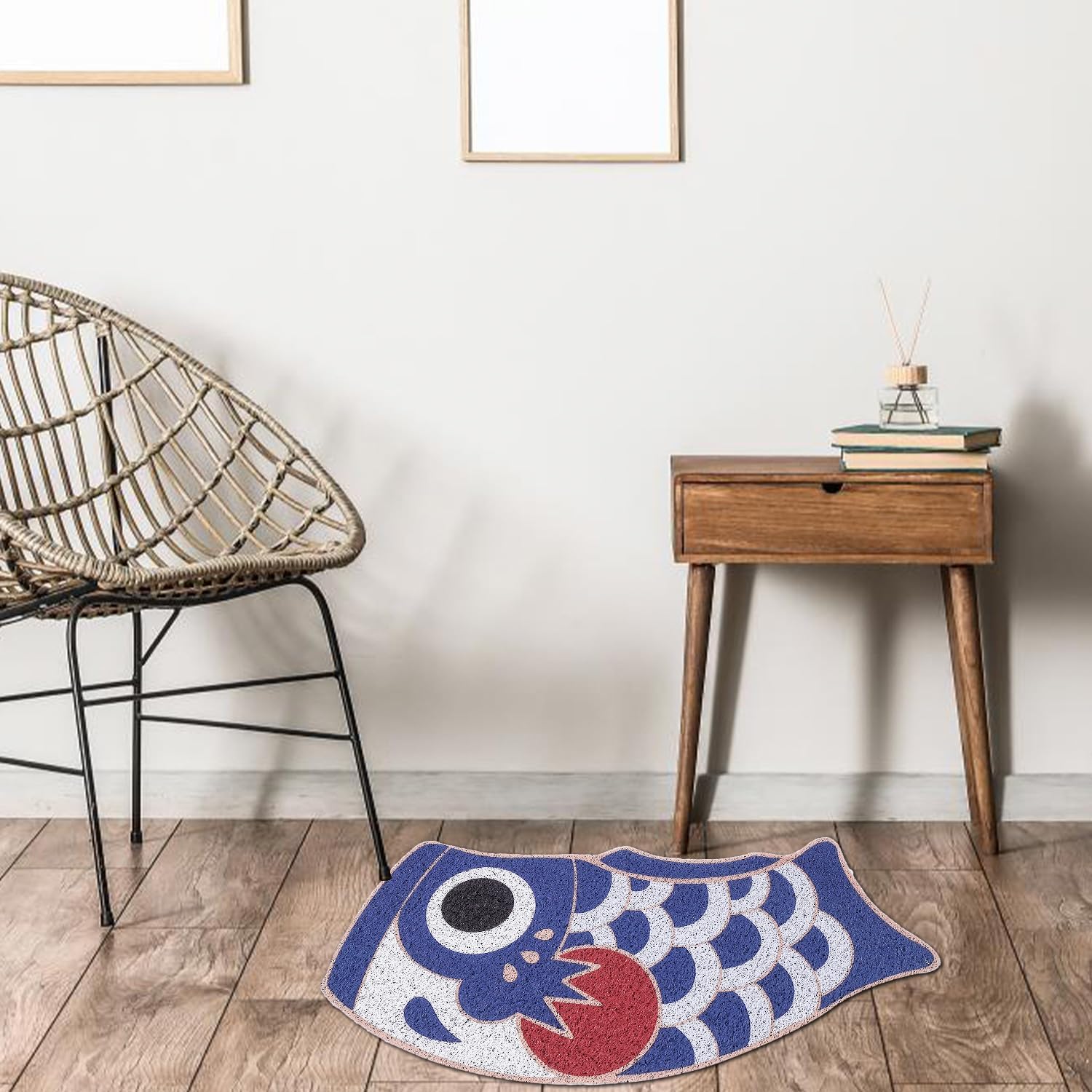 [Mat Size] - 40x90cm/15.7"x35.4". Japanese style fish doormat featuring a 0.31” (8mm), low profile thickness. [Material] - Entrance mats are made of high quality anti skid PVC coil. Non skid entry mat conveniently and effectively traps excess water, dirt, sand, litter, snow, and debris, simplifying clean-up. [Non-slip] - Rubber door mat won’t move around when wet or in use - making it safe and perfect welcome door mat outdoor for patio, garage, locker rooms, bathrooms, saunas, work stations, or anywhere people may be prone to fall or slip. [Washable] - Our mats is as easy to maintain as it is to enjoy, easy to clean. The vacuum cleaner can easily remove dust. Machine wash in cold water, do not use chlorine or bleach. [Customer Service] - Please feel free to contact me if you have any questions.