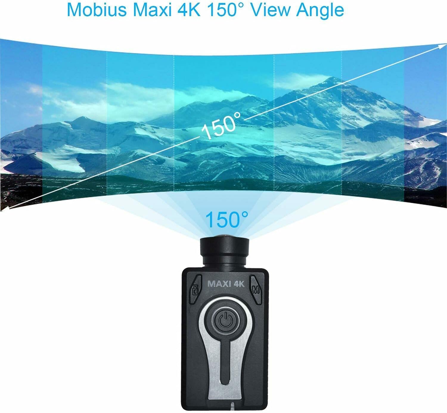 Notice: This is battery version (NO SUPER CAPACITOR) Specifications: Model: Maxi 4K Camera (MM4K). Angle of View: Lens A: FOV 150° (Diagonal), wide angle, f/2.8. Video Resolution: 4K 30fps /2.7K 30fps /2.7K 60fps /1440P 30fps /1440P 60fps /1080 P30fps /1080P 60fps /1080P 120fps /720P 120fps /720P 240. Video File Format: MP4 / MOV. Video Codec: H.264 / AVC. USB Interface: C (USB2.0). TV out (Video): PAL / NTSC. Memory Card: MicroSD memory card (not included in standard package). Supports FAT32 and exFAT, working with larger cards, 512GB tested. Note: 4K 30fps, 1080P 120fps and 720P 240fps requires U3 or above. LED Indicator Light: Red, Yellow, Blue, Green (can be turned off when needed). Buzzer: Supported (beeper can be turned off when needed). Microphone: Supported (Audio can be muted when needed). Dimensions: Approx. 72mm x 35mm x 18.5mm (Lens diameter 20.5mm). Net Weight: Approx. 50 grams only, with battery included. Power Input: Standard USB DC +5V (Recommended Charger 2A or above). Internal Battery: Rechargeable LiPo Battery (950mAh). Working current: Max 412mA@ DC 5V, Max 490mA@DC 4.2V. Fully charged battery can record up to 110 minutes of 4K 30fps videos and 155 minutes of 1080p 60fps videos. Photo Mode: single, burst and time lapse modes; JPEG. Long Exposure Photo: Supported (1s; 2s; 5s; 8s; 30s, 1minute). Motion Detection: Supported. Loop Recording: Supported. Auto Record: Supported, auto start when connecting to external USB power supply. G-Sensor: Supported; Auto save and lock Event video files; auto flip video. Advanced IQ Settings: Supported. Can set Exposure, AE metering, Contrast, Sharpness, AWB. Video Image Stabilization: Supported (EIS). Package included: 1x Maxi 4K Camera with Battery. 1x Mounting Base. 1x USB (data/charging) Cable. 1x USB OTG Adapter. 1x Pair Velcro. 1x Quick Start Guide. 1 x Heat sink.