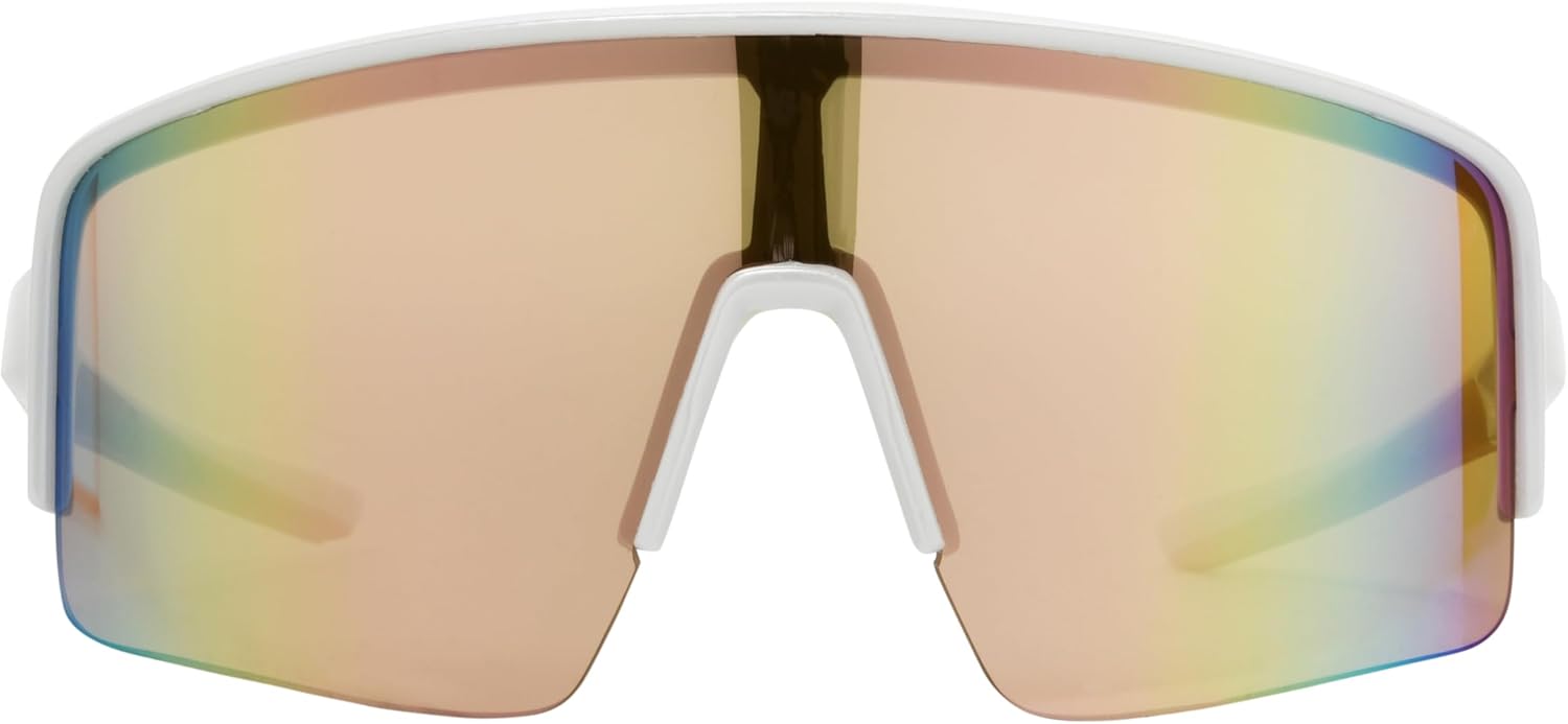 Elevate your outdoor experience with Easton Semi-Rimless Shield Sunglasses. Designed for active lifestyles, these trendy sunglasses feature wide, shield-style frames that provide a secure and comfortable fit. The rubber accents on the tips and nose bridge enhance stability, ensuring they stay in place during any activity. Crafted with impact-resistant, mirrored lenses, these men's and women's sunglasses deliver 100% UVA-UVB lens protection, making them perfect for baseball, softball, and other outdoor sports. The hydrophobic coating on the lenses resists moisture and keeps them easy to clean. Whether you’re looking for running sunglasses or versatile athletic sunglasses, Easton's design caters to the needs of fashion-conscious individuals while providing functionality. Lightweight yet durable, these shield sunglasses are ideal for all-day wear. With adjustable rubber nose pads and a sleek aesthetic, you’ll not only look good but feel confident while performing at your best. Choose Easton Semi-Rimless Shield Sunglasses for a stylish and functional accessory that keeps you one play ahead in every endeavor.