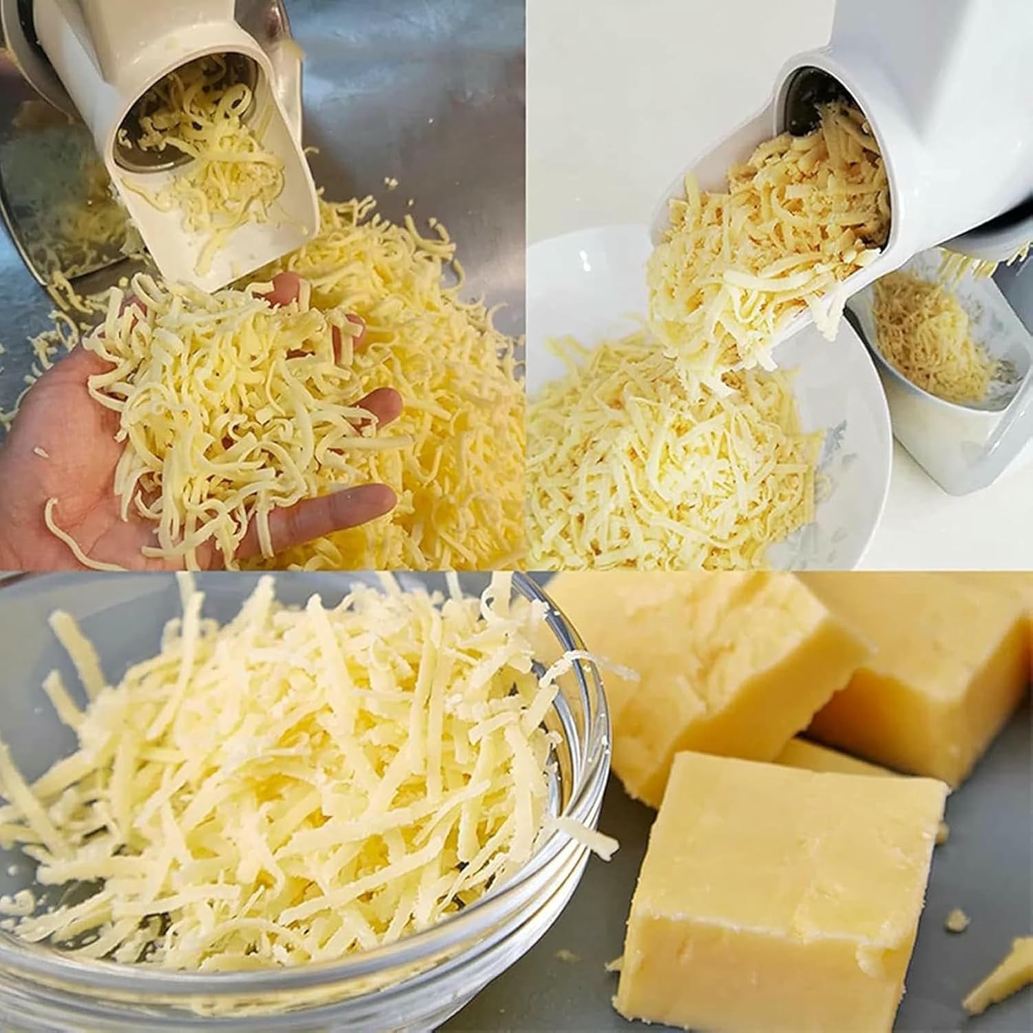This electric cheese grinder is designed for efficient grinding, with three interchangeable knife sizes: 2.5mm, 5mm and 7mm, to suit various grinding needs. For optimal performance, make sure the cheese is properly thawed, not too hard or too soft. The preparation of the cheese consists of cutting it into 4.5 x 4.5 cm strips before placing them in the machine and pressing with the included press bar. Mastering the softness and hardness of the cheese will give the best crushing results. In other words, it's the same.Specifications: - Name: electric cheese grater. In other words, it's the same. - Material: Food grade ABS and stainless steel. In other words, it's the same. - Power: 300 W. - Function: crushing - Working efficiency: 30 kg/h. - Entrance size: 4.7 x 5 x 10 cm. - Size: 18 x 35 x 27.5 mm. - Weight: 3.8 kg. - Package includes: 1 electric cheese grater