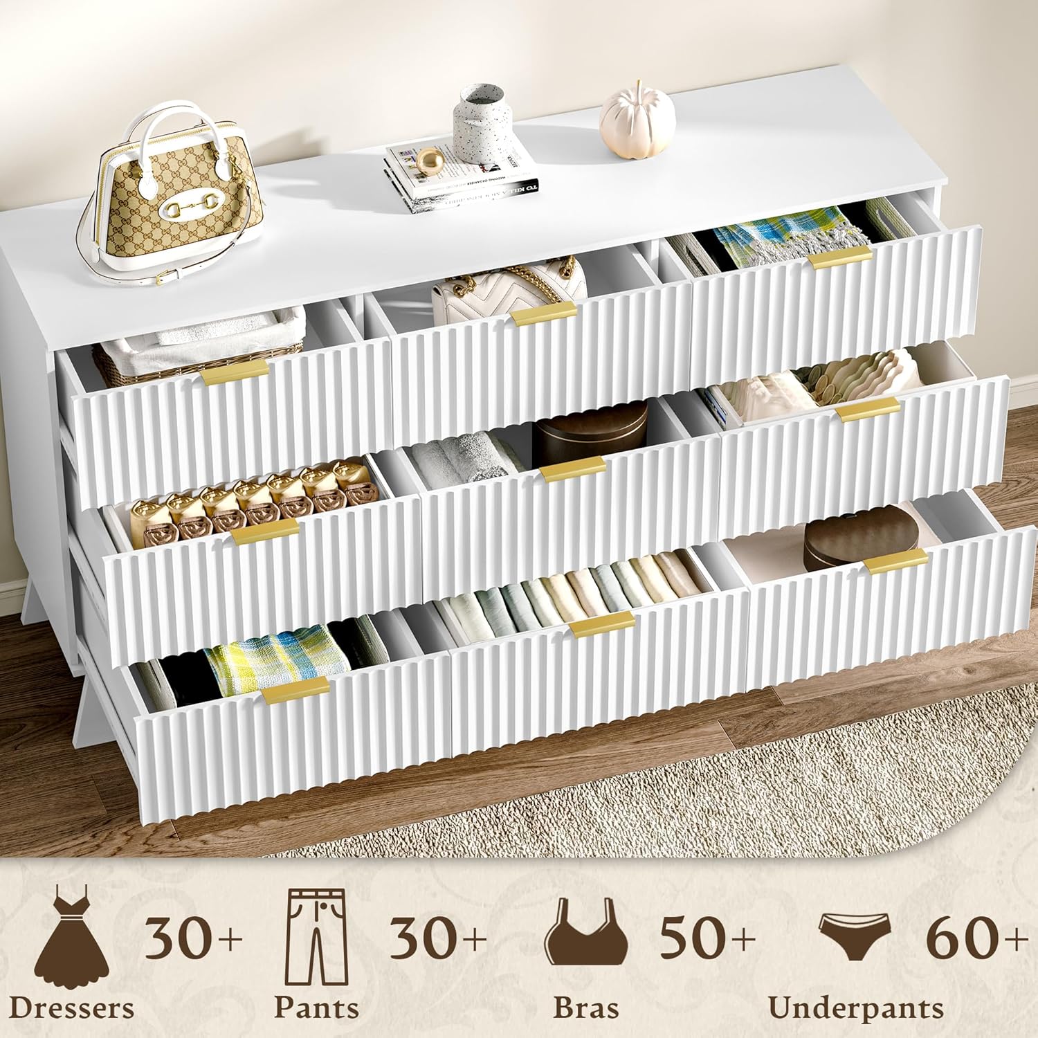 | Size | 15.6"D x 57.1"W x 30.3"H (9 Drawers) |
