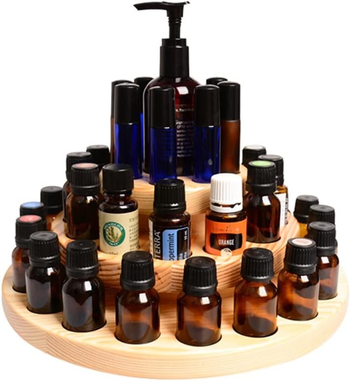 1. Light and compact.2. Excellent craftsmanship and sturdy structure.3. Cosmetic boxes are for displaying essential oils.4. It is a good chance to send excellent gifts to your friends and families fond of essential oils.5. It provides a solution for you to safely store, display and transport your essential oils.Product Parameters:1. Material: wood2. Color: as is shown in the pictures3. Size: about Diameter: 27CM (10.62 inch)Package Included:1 * Essential oil display rackNote:1. Due to manual measurement, please allow 1-3 mm error. Please make sure you do not mind it before buying.2. The color may be different, please understand.Perfect for dining tables, coffee tables, dressers or any part of the home.