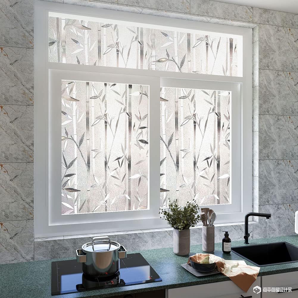 Frosted Window Glass Film, Bamboo Privacy Window Clings, Stained Decorative Window Decals, Static Clings No-Glue Removable Window Sticker for Home (35.4 x 157.4 inch)