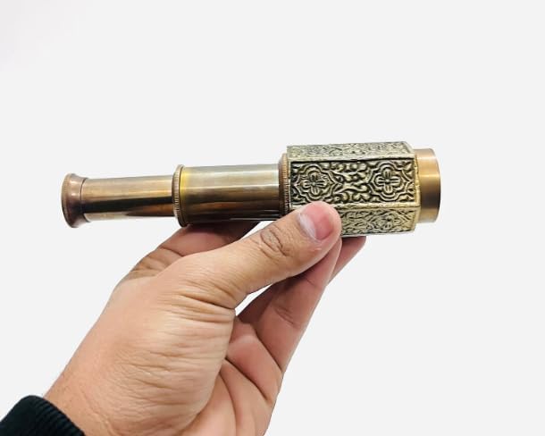 Antique Design Marine Sailor Home Decor Handheld 16" Brass Telescope with Box Maritime Gift Material: Brass & Glass Magnification: 10x Approx. Finish: Antique beautiful Polished Leather Box Look at Photos For Actual Image Of Product. Handmade Reproduction Item, Not Sold As Antique. Good Piece Of Collection. Best for gift.