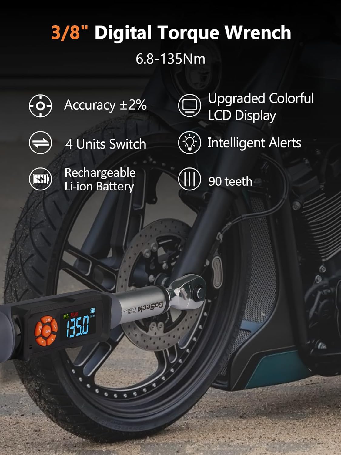 | Included Components | 3/8" to 1/4" and 3/8" to 1/2" adapter, 6" extension bar, Instruction manual & calibration certificate, sockets 14 16 17 21mm, type c charge cable |