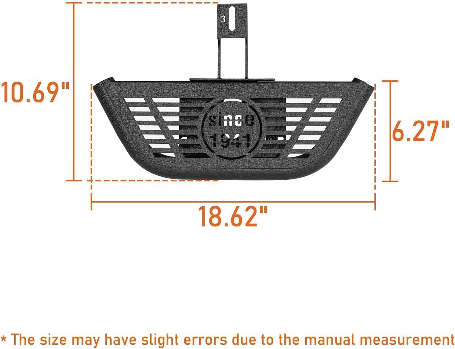 | Included Components | 2x Mounting Brackets, 2x Side Hoop Steps(Passenger and Driver Side), Installation Instruction, Mounting Hardware Kit |