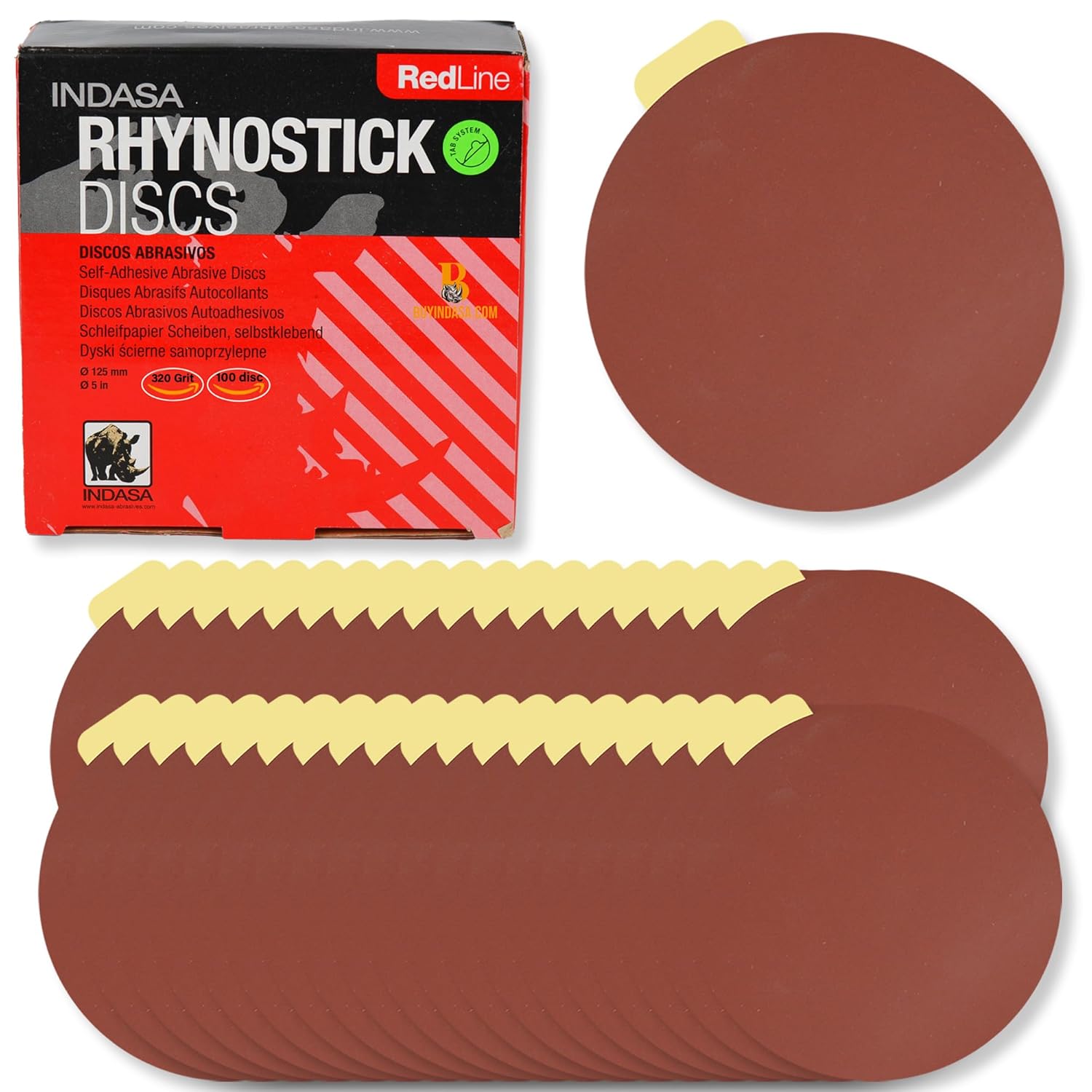 The Indasa 5" Rhynostick Redline PSA Solid Sanding Discs (500 Series) are built for high-performance sanding applications across automotive refinishing, woodworking, industrial prep, and marine coatings. 🛠 Rapid Stock Removal & Clean Scratch Pattern – The premium Aluminum Oxide abrasive grains ensure fast cutting power with uniform scratch distribution, making it ideal for shaping fillers, sanding topcoats, and smoothing primers. 🧲 Secure PSA Sticky Backing – Featuring pressure-sensitive adhesive (PSA) backing, these discs stick firmly to flat vinyl face backup pads and remove effortlessly with the Easy Peel Tab System. 🛡 Clog-Free for Extended Lifespan – A special lubricant coating prevents dust buildup, reducing clogging and extending the working life of each disc. 🔄 Durable & Flexible for Versatile Use – The C/D weight backing paper adapts to contours and curved surfaces, providing precise, smooth finishes with minimal tear resistance. 📦 Bulk Pack Options for Every Project – Sold as 50 discs per box for 40 grit, and 100 discs per box for 60 to 800 grits, making it cost-effective for DIYers, professionals, and industrial workshops. 📌 Perfect for Various Surfaces – Ideal for sanding old paint, preparing fillers, smoothing primers, working on solid surfaces, and shaping fiberglass, gelcoat, and wooden floors. Whether you're restoring a car, preparing a marine surface, or working on furniture refinishing, Indasa Redline PSA Sanding Discs deliver precision, efficiency, and superior performance.