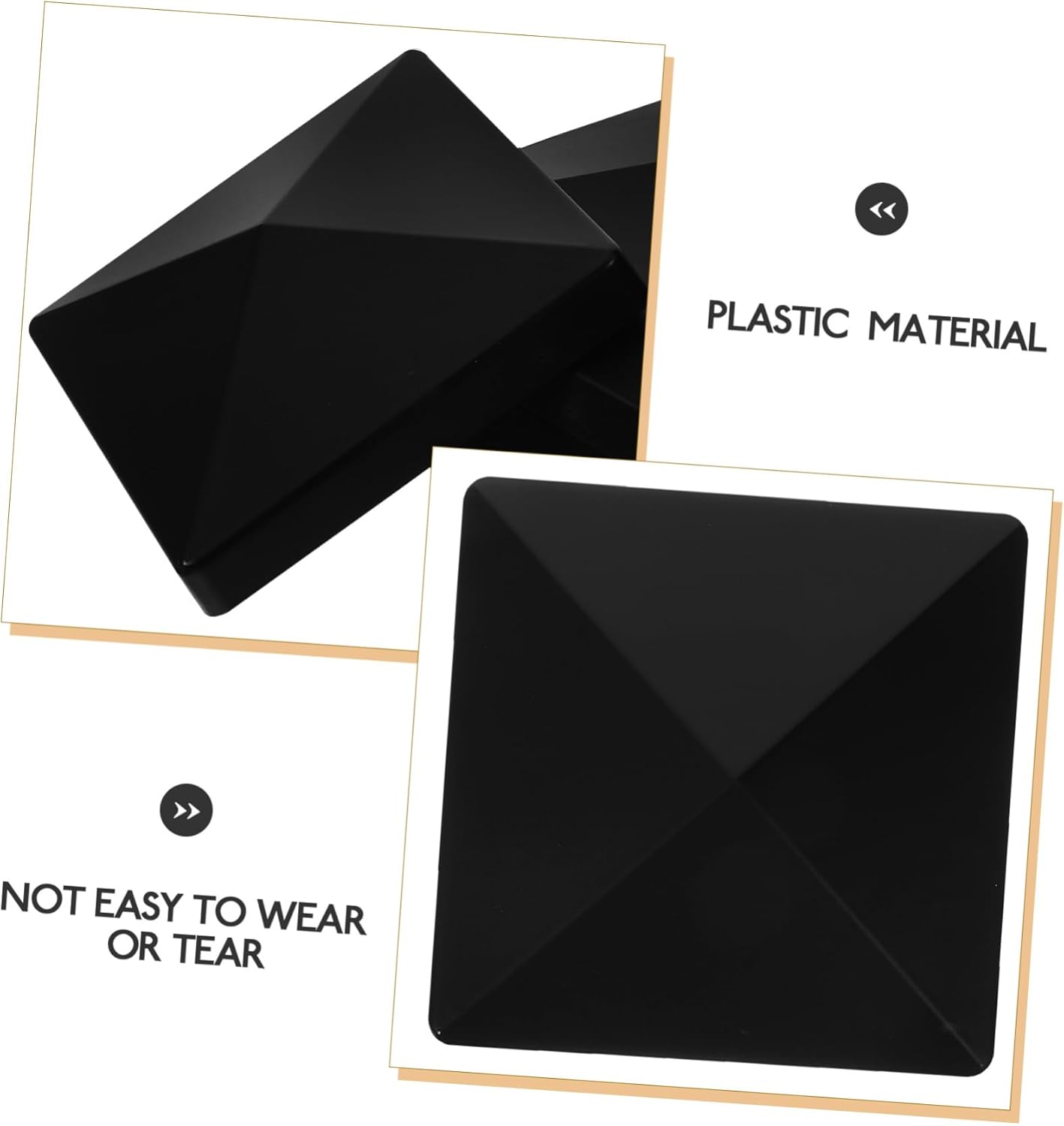 Package List 20 x Caps 40 x Screws Features -Note: Only fits inside dimensions of 4 inches by 4 inches fence column cover. -Size:10.50X10.50X3.50cm/4.13X4.13X1.38in doorknob covers -Color:Black railing cover -Material:Plastic childproof door knob - cover for fence posts, traffic barrier column, guard bars, railing, guardrail, etc door handle. - Smooth edges, no burrs, will not scratch your hands, can keep your guardrail from post caps. - Fine workmanship, and sturdy, to wear or tear, you deserve to have one guardrail plastic covers. - Suitable for fence posts or gate frame sides, guard bars, traffic barrier column, and etc deck post solar lights. - This post cap decorates your fence post and is suitable to weather all seasons fence post cap.Goods Descriptionpost caps That's because our product can meet your demands.fence post finials Adopted of plastic material, it is and for long time use, to deform or break.decorative fence post caps If you are still in search of professional and multi-purposes fence post caps, then your research is over here