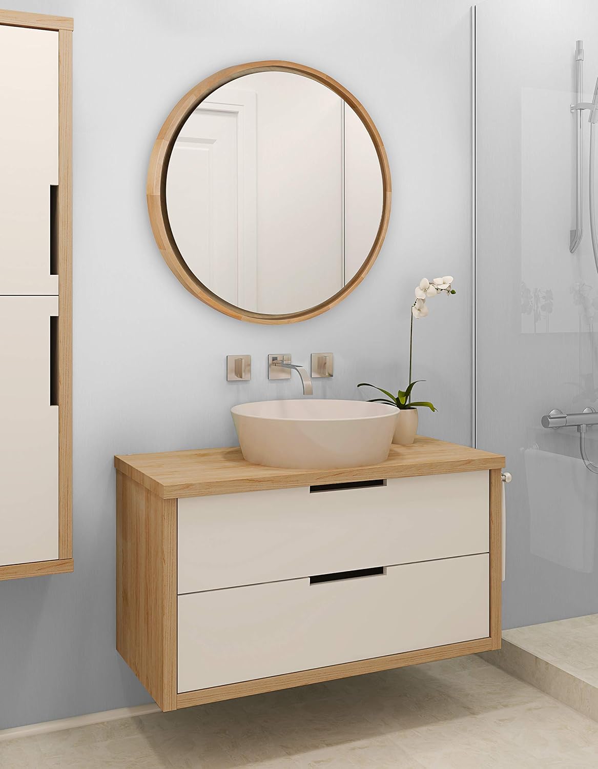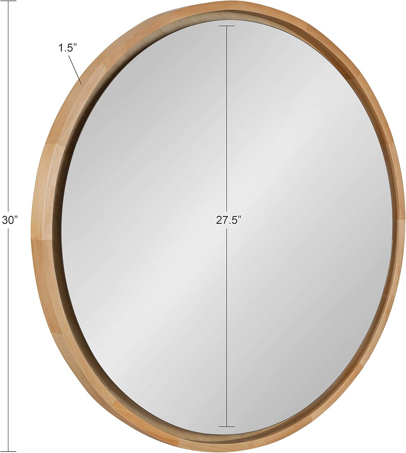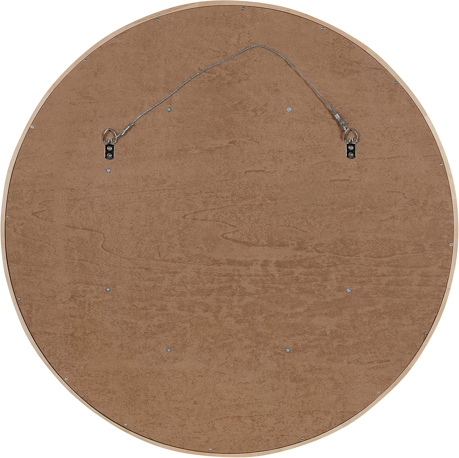 The Evans wall mirror adds a lovely, boho-chic accent to any room of your home. The Evans mirror has a robust, solid poplar wood frame with a light natural finish, creating a functional, premium accent that's perfect for any mid-century modern living or office space. The interior glass of this mirror floats within the frame, providing an eye-catching, unique design detail and statement. The Evans mirror features a 30-inch diameter, providing the perfect broad accent to highlight over a fireplace or console table. Hanging a mirror in your home spreads more light throughout the area, creating more depth and dimension even in small spaces. It's perfect for any modern living room, bedroom, entryway, dining room, or office. You could also use this functional wall accent as a bathroom mirror above a vanity or sink. The Evans wall mirror makes for a lovely focal point on its own, or you can display it in multiples for a grand, mid-century wall display. This wall mirror hangs in a matter of seconds with convenient metal D-ring hangers securely attached to the back.