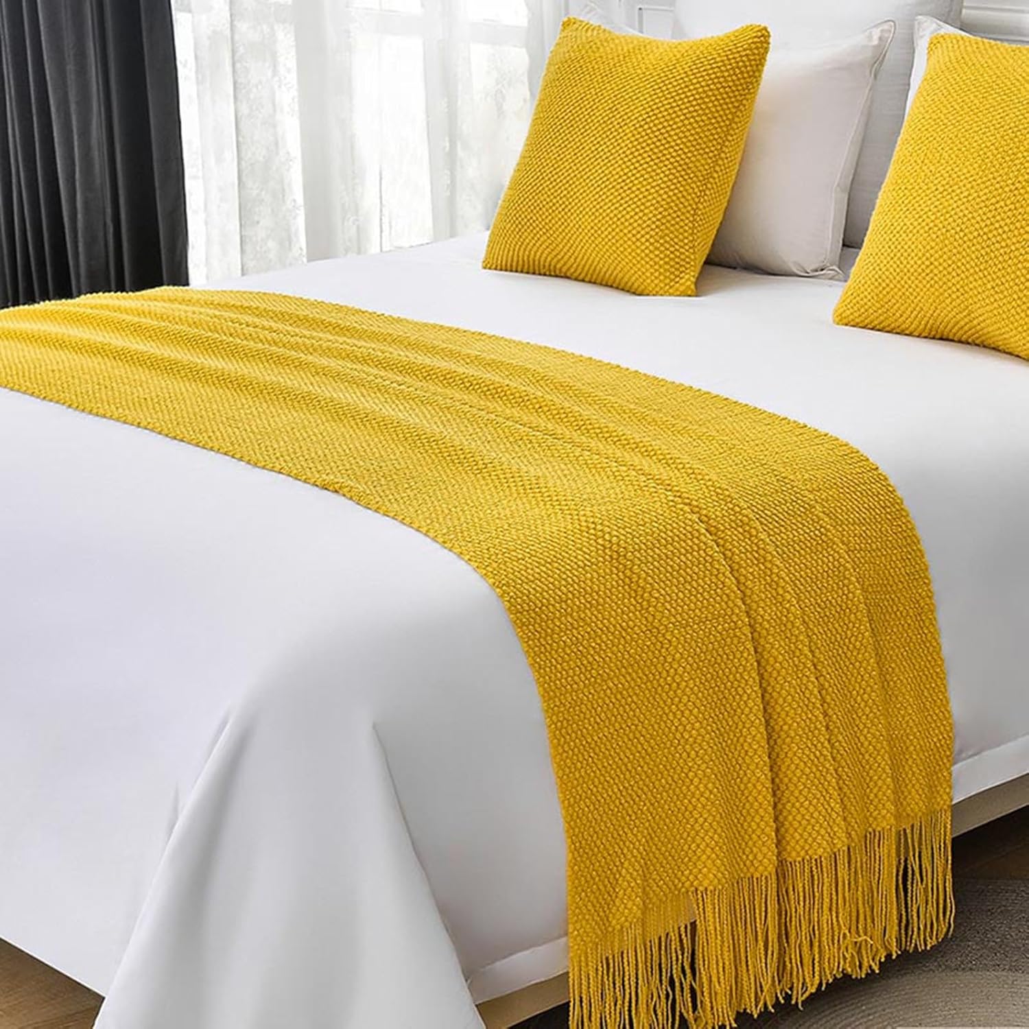 HOW TO BUY?★★★★★Sheets and pillowcases must be purchased separately★★Please choose the size according to the width of the bed or your preference.How's the effect?- Place at the end of the bed to make the bed look stylish and decorative- Visitors can do it on the sheets, clean and hygienic, with a protective effect- Prevent relaxation during sleep and prevent coldsThis is the ideal decoration for your bedroom and brings you a pleasant atmosphere.Specification:Product name: bed runnerssize:63X172cm [suitable for 1.2m bed]65x230cm [suitable for 1.5m/1.8m bed]65X260cm [suitable for 2m bed]Applicable occasions: home, bedroom, hotel, dining table, sofa, homestay, bedding.Care Instructions:1. Hand wash and machine wash in cold or warm water below 30 degrees Celsius.2. Please do not bleach, wash with mild detergent for better maintenance.3. Please wash separately or together with items of similar color.4. If there are slight wrinkles after long time transportation or washing, it is better to iron at low temperature.Package included:1 x bed runner(without throw pillow cover)Pillow cover bought separately