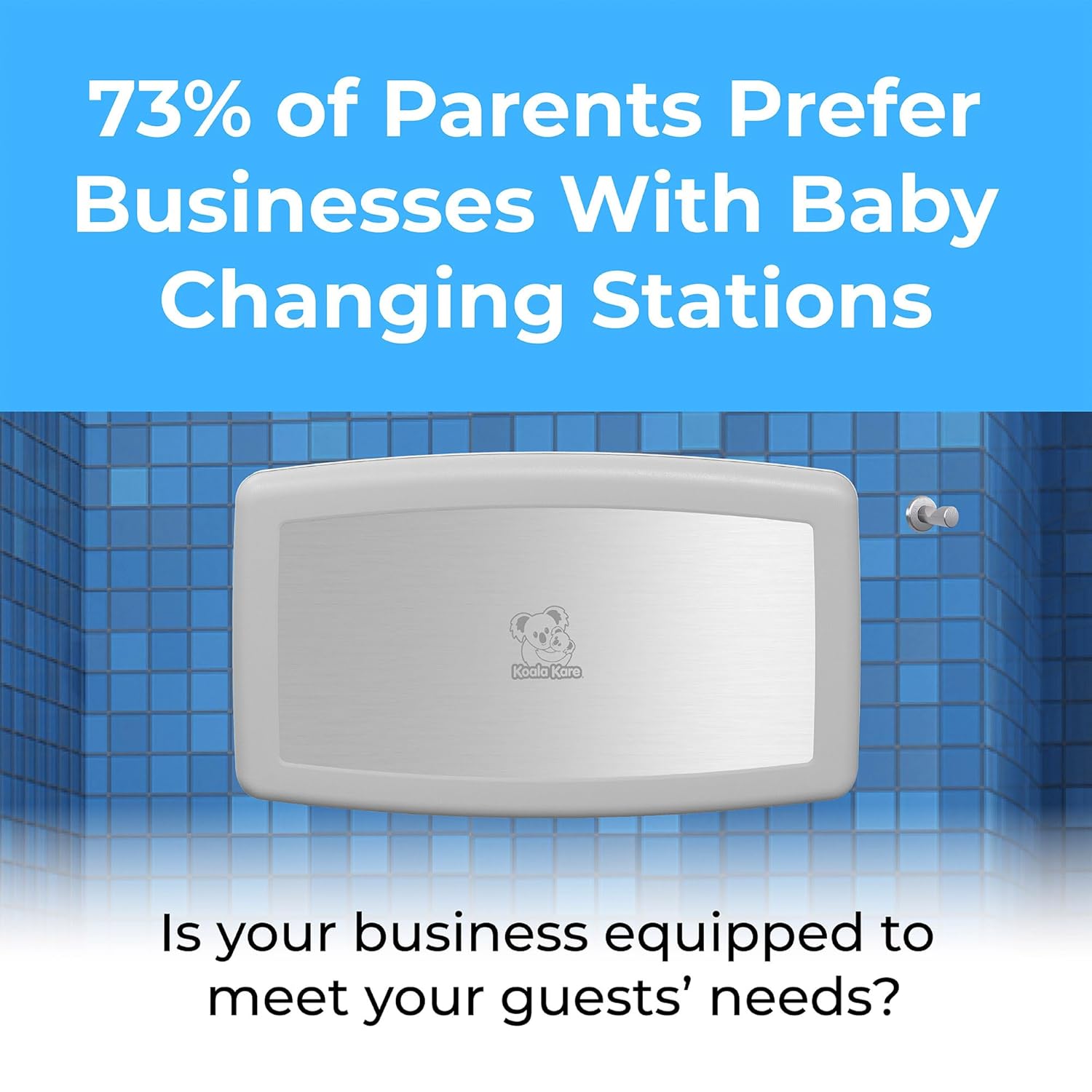 Available in two stunning colors with each providing a modern visual aesthetic. Thoughtful patron amenities enhance the end-user experience, and include Microban® product protection, a redesigned liner dispenser, a convenient external solid stainless steel rod bag hook with satin finish and the Koala brand mark that communicates comfort to families and the promise of a thoughtful accommodation. The dual liner cavity has an internal spring tab that pushes liners forward while only allowing single liner dispensing. Each cavity holds 25 liners and locking mechanism minimizes operator refills and discourages potential vandalism. The product includes child protection straps. The external stainless steel bag hook is for safely storing a diaper bag off the floor and keeping the diaper bag in close proximity to the caregiver for ease of use. Bed surface exclusively contains Microban® product protection that helps keep the bed surface fresher between cleanings. Concealed ventilated cylinder provides controlled, slow opening and closing of the changing station bed.