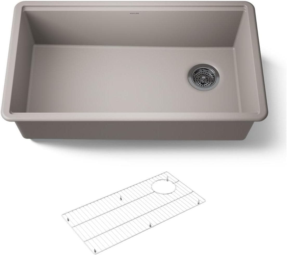 The Billings 18" undermount bar sink raises the bar on functionality and professional styling with options for custom accessories (sold separately) that integrate seamlessly within the bowl's ledge. The Billings sink is made of KOHLER Neoroc, a matte-finish composite material designed for extreme durability and unmatched beauty. Richly colored to complement any countertop, Neoroc resists scratches, stains, and fading and is highly heat- and impact-resistant. The sink's deep bowl has easy-to-clean rounded corners.