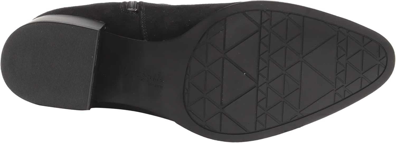 A must-have tall riding boot with a chic metallic embellishment. Eco-microsuede upper with an almond toe, side zip, and metallic interlocking ring detail. Toe box, heel counter, insole board, linings, and eco-microsuede fabric partially crafted with recycled materials. Soft System® comfort package provides all-day support, flex, and cushioning. Traction sole provides you with extra stability. 14 and 3/4 inch calf circumference, 15 inch boot height. Just Right Height 2 inch block heel.