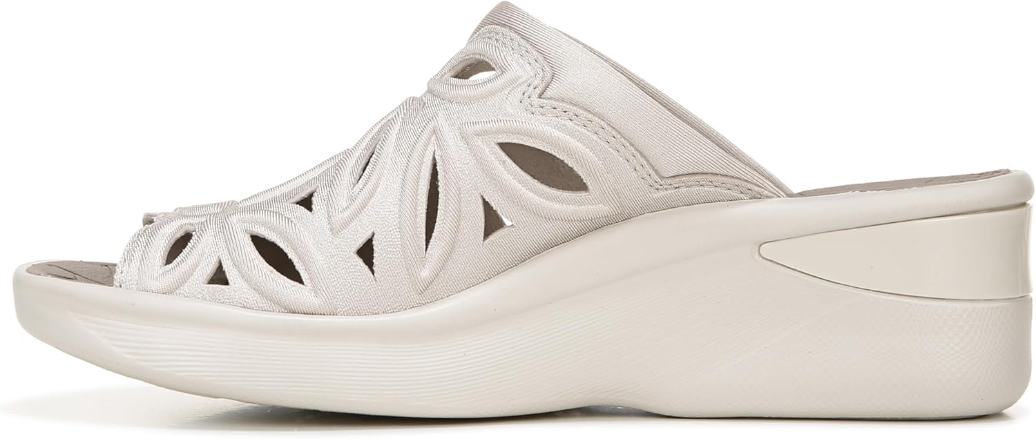 Cool off! Everyone’s talking about these comfortable + lightweight slide sandals with cutout details. Stretch fabric upper with a round toe. BZEES Air Step Technology: Designed so you’ll feel weightless, energized and free. Ultra Lightweight: Step lightly with a nearly weightless feel. Dynamic Stretch Fabrics: Move freely in shoes with built-in stretch. FreeFoam™ Comfort: Low pressure insoles with maximum foot contact and cushy arch support. Anti-Microbial and Odor Control technology. 1 inch platform, 2 inch wedge heel. Get Width It: Countless pairs of Bzees come in wide width shoes for women. Machine Washable: Wash on cold and air dry.