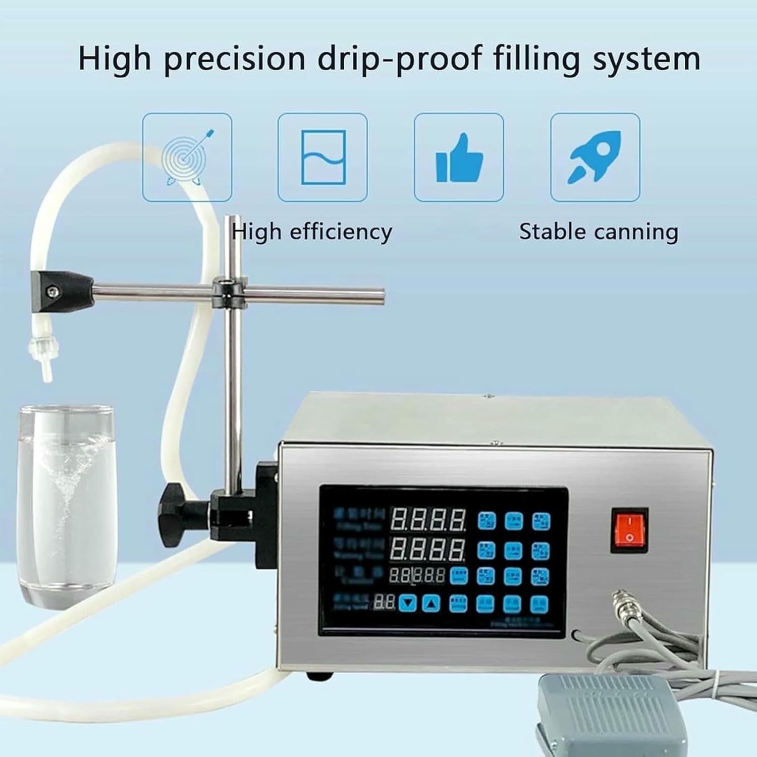 Model number:Our filling machine is widely used in food and drinks fields, cosmetics, personal care, agriculture, pharmaceutical and chemistry.An ideal device for low viscosity fluids, liquids without particles such as water, olive oil, fuel, drinks, etc.Small Automatic Liquid Filling machine of weighing type, Subembotelladado filling CNC of canned water drinks and alcoholic beverages.Budget:Voltage: 110V-220VPower: 30WFilling range: 5-3500 mlMachine size: 25*28*16 cm (length x width x high)Machine weight: around 5 kgPackage:1 liquid filling machineWarning:If you have any questions, do not hesitate to contact us, we will be happy to help you.