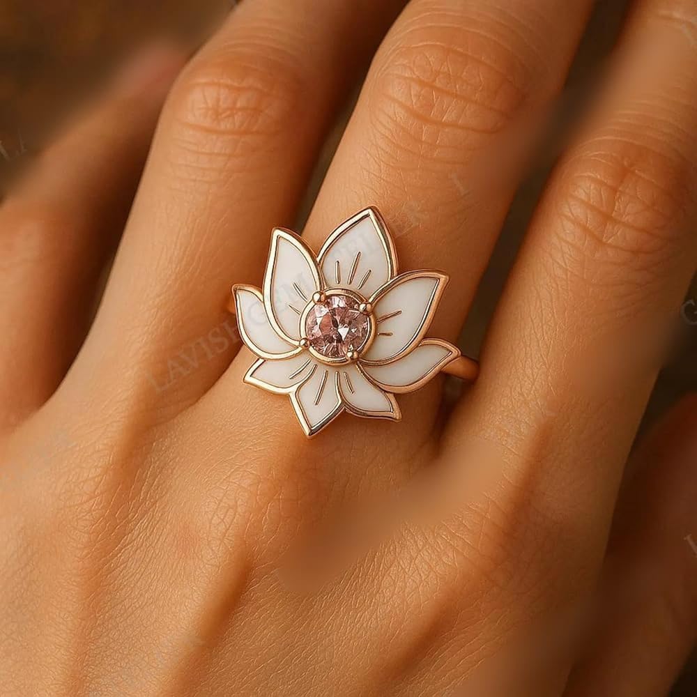 Lotus Flower Ring for Women Rose Gold Plated Pink Stone Enamel Petal Design Handmade Boho Statement Ring Spiritual Jewelry Gift Celebrate your love with the Lotus Flower Ring Enamel Band Rings featuring the powerful and timeless. These 925 Sterling Silver rings are designed to be the perfect symbol of eternal love, making them an ideal choice for couples seeking a meaningful and stylish accessory. The black enamel finish offers a modern yet sophisticated touch, while the engraving provides a deeply sentimental message for both men and women. Crafted from high-quality 925 sterling silver, these rings are durable, hypoallergenic, and designed to last a lifetime. The unique combination of sleek black enamel with a delicate silver band makes them a versatile piece that complements both formal and casual attire. Whether you're marking a special milestone or simply want to express your love, these rings are the perfect choice for Valentine's Day, weddings, and anniversaries. With its matching pair set, these rings are not just accessories but an enduring symbol of commitment and affection. Ideal for couples who want to commemorate their relationship in a meaningful and elegant way, these rings can be worn daily as a reminder of your everlasting bond.