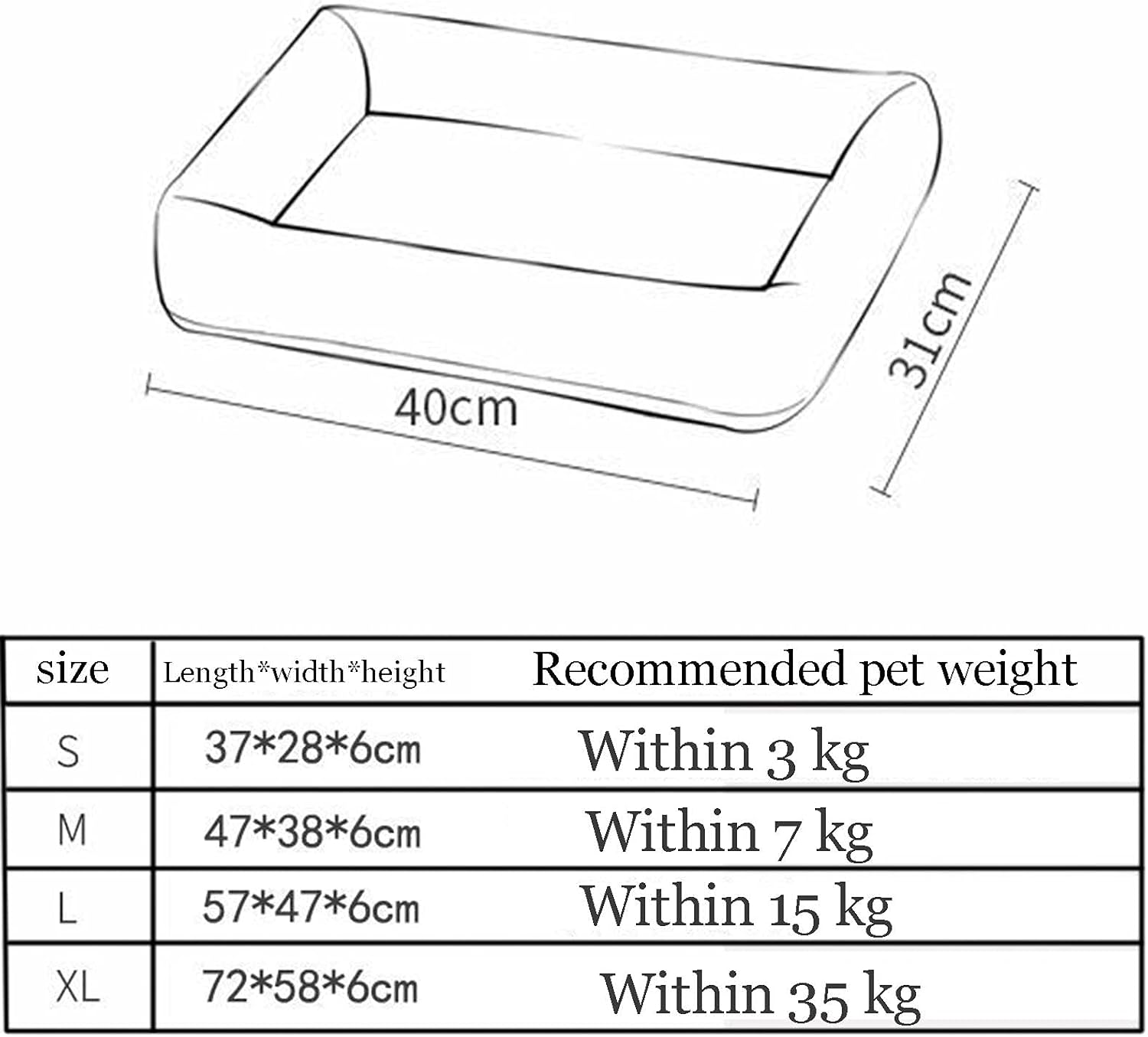This pet bed is made of soft fabrics, which is environmentally friendly, keeps the dog bed warm and comfortable, provides a comfortable and healthy sleeping environment, and maintains its original shape for a long time. feature: 1. Use high-quality Oxford cloth material. Waterproof, non-slip, easy to clean 2. Filled with pp cotton to make your pet more comfortable lying on it. 3. This pet mat has good air permeability and skin-friendly properties. 4. The raised edge can be used as a pillow. Can protect pet's cervical spine. specification: Size: S:(37*28*6cm)M(47*38*6cm)L(57*47*6cm)XL(72*58*6cm) color: blue Fabric: High resilience PP cotton + Oxford cloth Style: All-in-one Applicable objects: small and medium pets The package contains: 1x pet nest If you have any questions, please feel free to contact us via email, and our team will contact you via email within 24 hours.