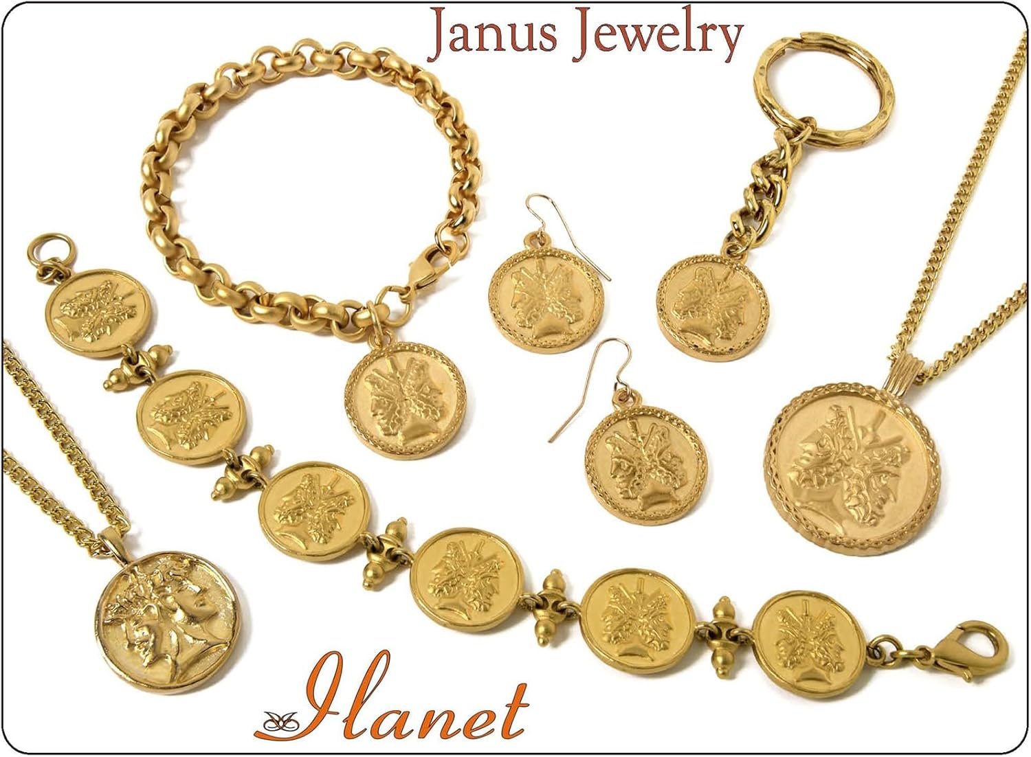 In Roman religion, two heads back to back, each looking in opposite directions represented by Janus.; Janus was regarded as the Roman God – The custodian of the Universe, God of all beginnings, and the guardian of gates and doors. He signified the tradition between primitive life and civilization, and maintained the balance between peace and war and youth and old age. The month of January is named after him, and his festival The Agonium took place on January 9. Original image on left. Silver plate over pewter with 18" (45cm) silver plate chain. The JANUS double-headed coin measures approximately 0.85” diameter. Designed and manufactured in USA by our parent company Multilana New York