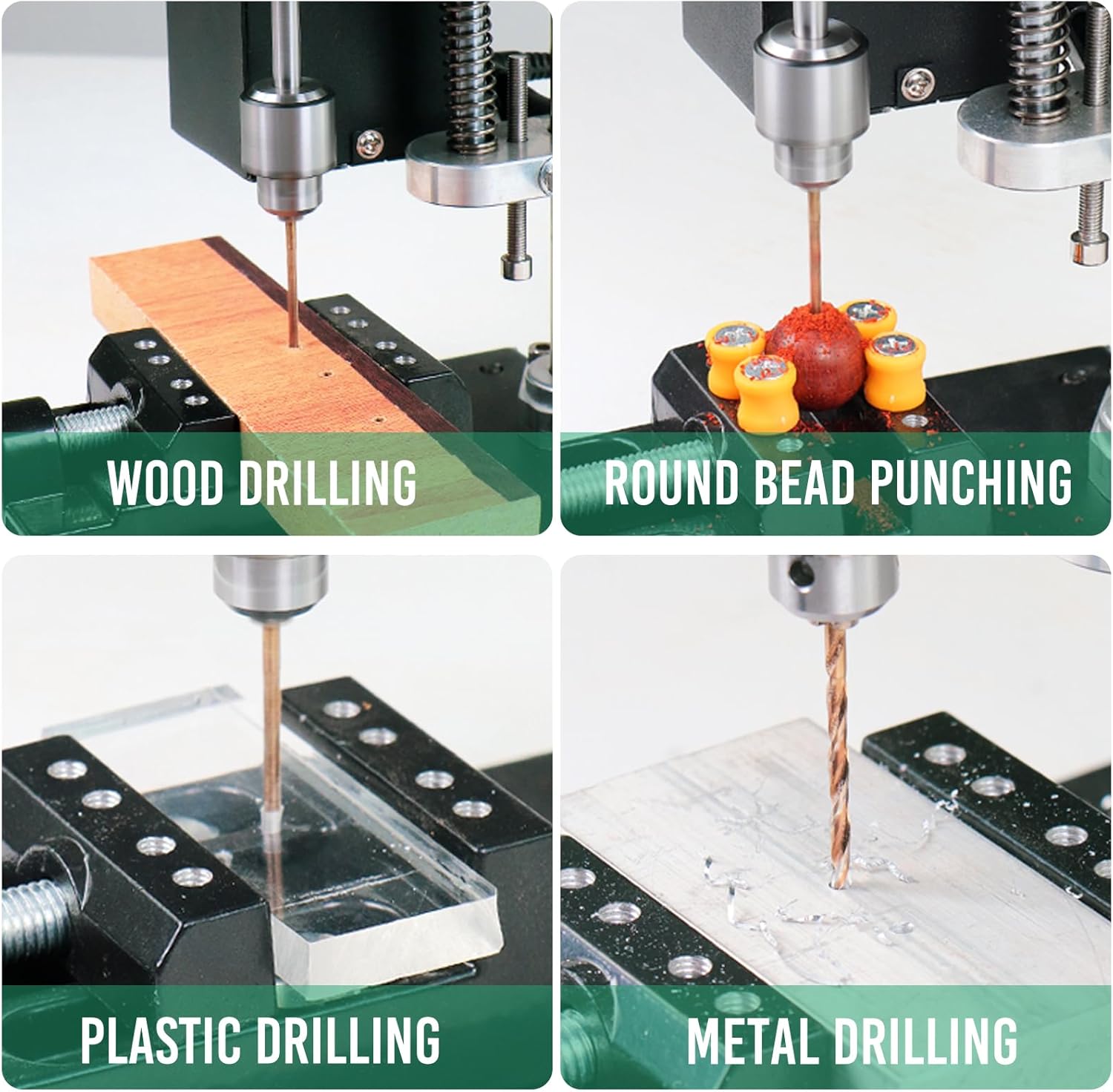 You Will Receive: 1 Bench Drill 1 Flexible Shaft 1 Drill Bit Set 1 B10 Chuck 1 Accessory Set Note: (Includes 5 additional cobalt-containing drill bits) Description: Bench Drill Dimensions: 215 x 180 x 130 mm (8.5 x 7 x 5.1 in) Maximum Speed: 7000 rpm Voltage: 24V 8.33A Rated Power: 200W Drill Chuck (B10) 1 Holding Range: 0.6-6 mm Flexible Shaft Clamping Range: 0.5-3.2 mm Head Height Adjustment: 50 mm Drill Bit: Drill Diameter: 2 mm Length: 4.8 cm Shape: Spiral Flutes, 135° Point Angle Material: High-hardness Steel + 8% Cobalt High-Speed Steel