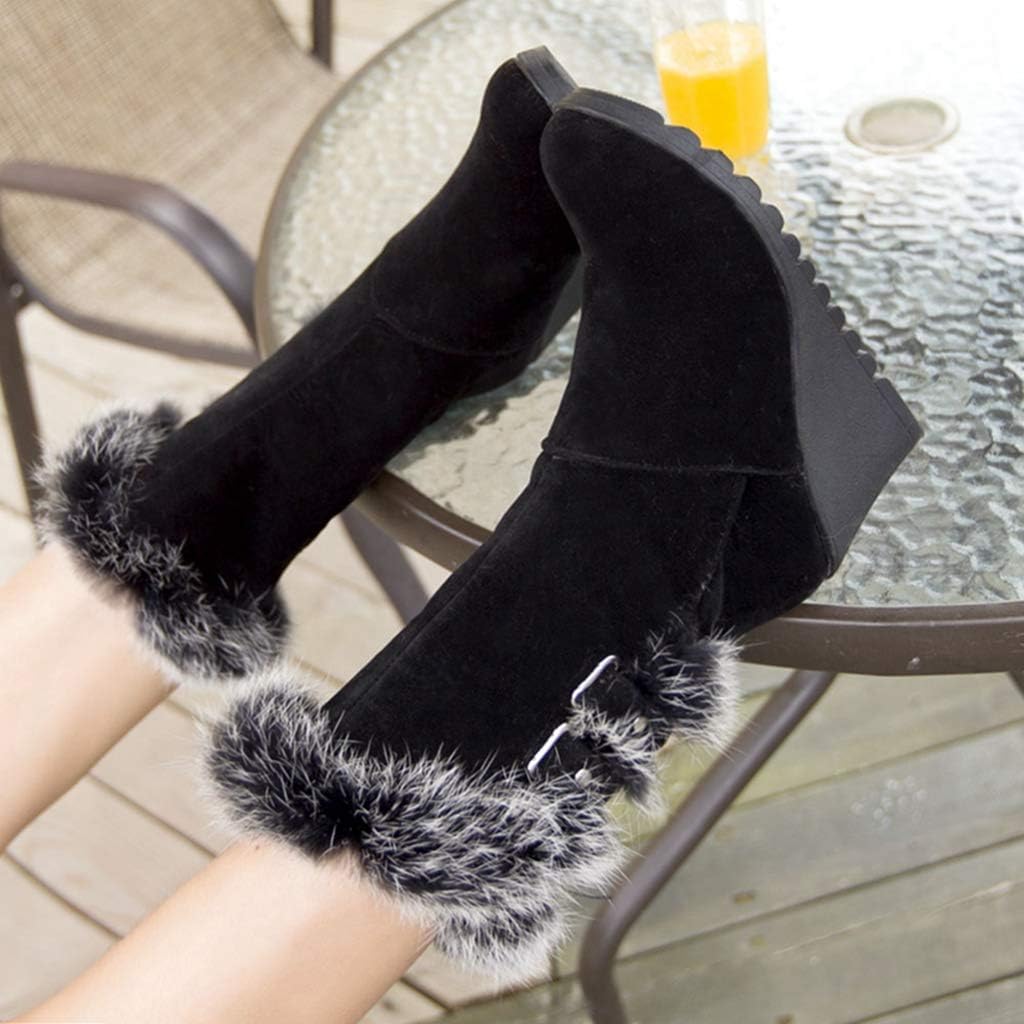 Women's Winter Fur Wedge Snow Boots Mid Wide Calf Waterproof Buckle Slip On Platform Warm Snow Boot Size Chart:Size 4 US = EU34 = Heel to Toe 22.0cm/8.66"Size 4.5 US = EU35 =Heel to Toe 22.5cm/8.86"Size 5 US = EU36 = Heel to Toe 23cm/9.06"Size 6 US = EU37 = Heel to Toe 23.5cm/9.25"Size 7 US = EU38 = Heel to Toe 24cm/9.45"Size 8 US = EU39 = Heel to Toe 24.5cm/9.65"Size 8.5 US = EU40 = Heel to Toe 25cm/9.84"Size 9 US = EU41 = Heel to Toe 25.5cm/10.04"Size 10 US = EU42 = Heel to Toe 26cm/10.24"Size 11 US = EU43 = Heel to Toe 26.5cm/10.43"Use your length and width measurements to find your shoe size on the above size chart. If your foot is fat or wide, please select a bigger size up.PERFECT ITEM FEATURES:☛Item Type: Snow Boots☛Main Material: High Quality Suede Leather Upper; Comfort Warm Fur Lining; Non-skid Rubber sole.☛Closure_type: Slip On Closure☛toe_style: Round-toe☛Heel Height: Heel Height 2.75 inch☛Width: Medium (BM)☛Season: Winter/Cold Weather☛Color: Multiple colors optional☛Occasion Lifestyle: Fashion,Classic,Casual.☛ ☛