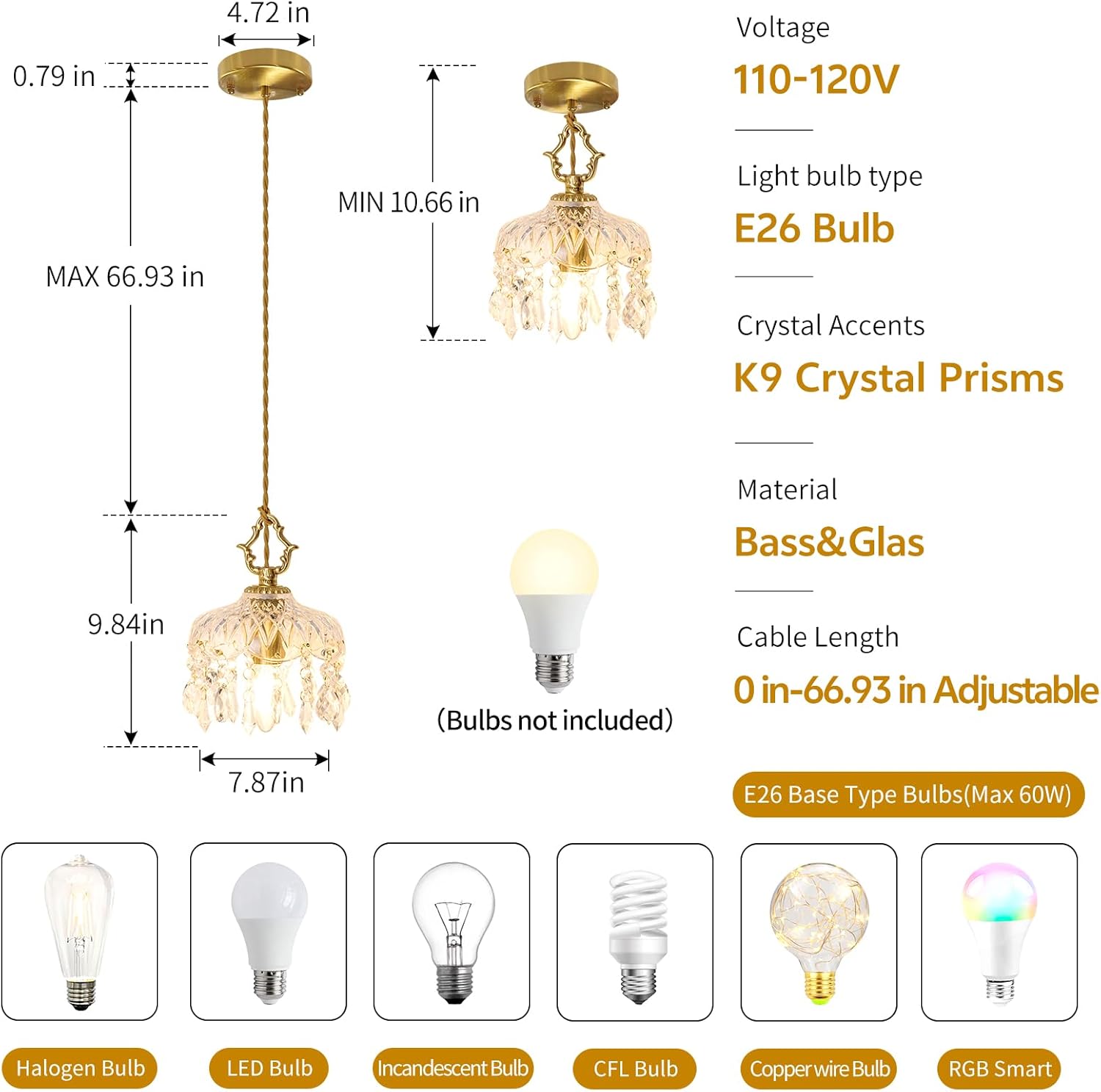| Model Name | Vintage Crystal Plug in Pendant Light |
