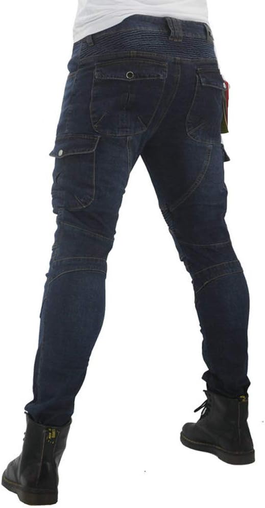 Material:14oz Denim Cloth,97% Cotton,3% Spandex(Hard Wearing,Windproof,Breathable,Anti-tearing) Jeans Style:Pencil Pants,Button Fly closure,Machine Wash,mid-rise waist Including:1 X Motorcycle Riding Pants + 2 X Knee Pads + 2 X Hip Pads Color: Black,Blue,Army Green Size:S=28,M=30,L=32,XL=34,XXL=36,XXXL=38; S=28,Waist 80cm/31.5",Length 105cm/41.3",Hip Circumference 98cm/38.58" M=30,Waist 85cm/33.46",Length 105cm/41.3",Hip Circumference 103cm/40.55" L=32,Waist 90cm/35.4",Length 108cm/42.5",Hip Circumference 108cm/42.51" XL=34,Waist 95cm/37.4",Length 110cm/43.3",Hip Circumference 112cm/44" XXL=36,Waist 100cm/39.37",Length 110cm/43.3",Hip Circumference 116cm/45.66" XXXL=38,Waist 105cm/41.3",Length 112cm/44",Hip Circumference 120cm/47.24" Features: Armour:Free Removable Hip and Knee Protector provided for enhanced Protection Hard Wearing,Windproof,Breathable,Anti-tearing Fashion Trends and Riding Safety Design,2 X Knee Pads and 2 X Hip Protect Pads,Perfect for Motorcycle and Daily Including the European Union CE EN1621-1:1997 Motorcycle Protection Equipment Certification,Knee X2 and Hip X2 Sponge Protection Module Knee and Back Waist Folding Design: Can give the Knight More Flexibility,Very Ergonomic High-tech Fabric of the Telescopic Function When not in use,Can be Quickly Unloading,Unlike the Market Generally Need to Purchase an additional anti-collision pants protection pads