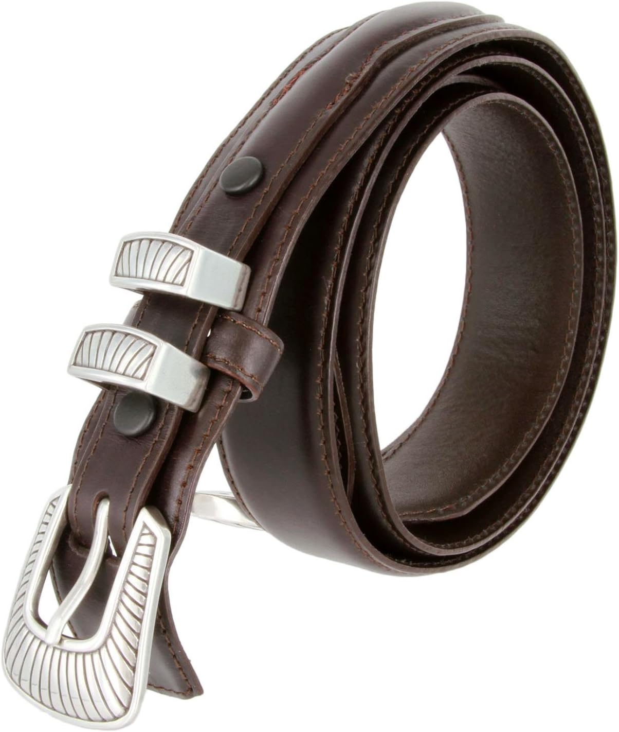 Our Sturdy And Durable Belt, The Texas Ranger Oil Tanned Leather Belt Features Our 4 piece Western 3/4" buckle set. The belt Is 1-3/8" Tapering to 3/4".